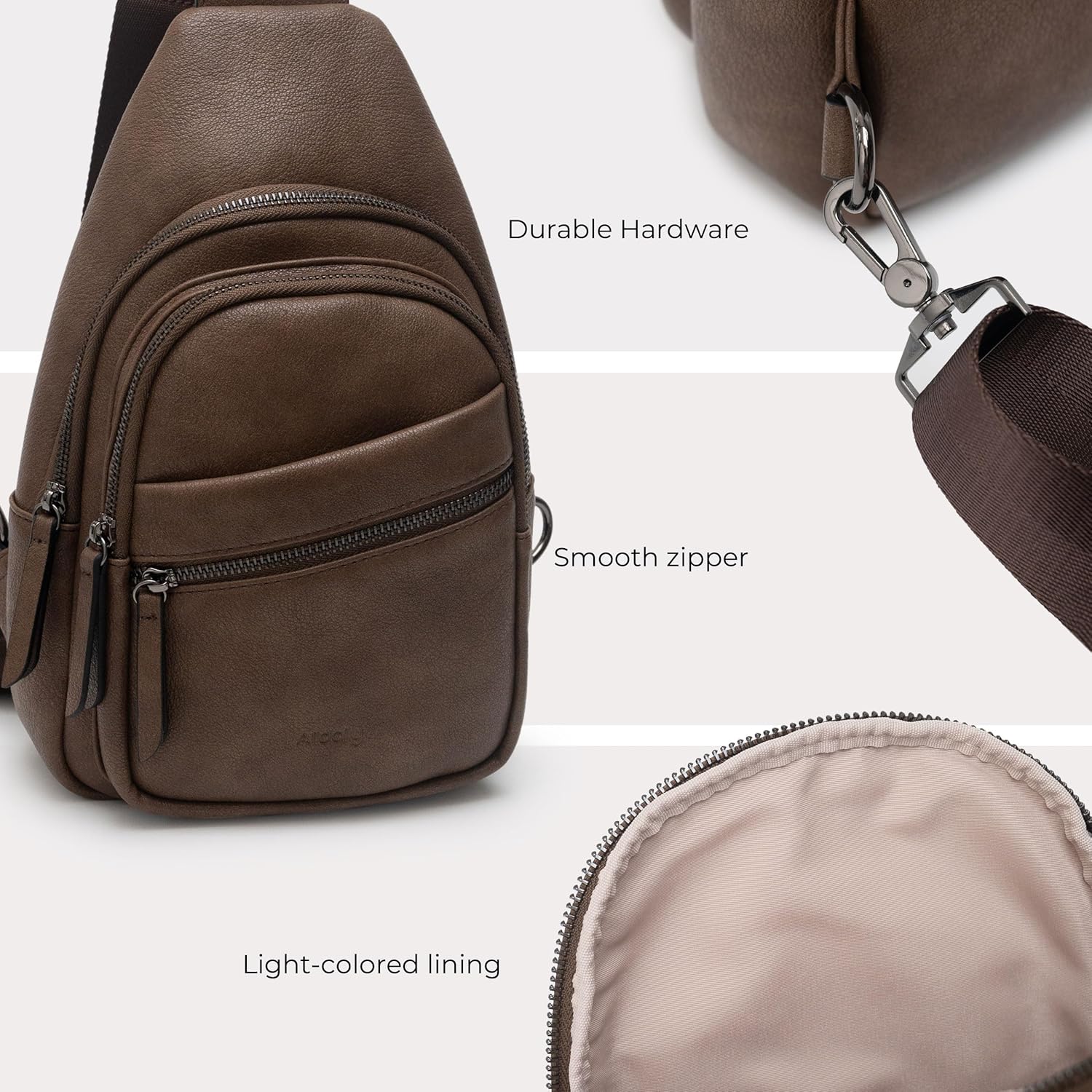 Alldaily Large Sling Bag for Women Crossbody Purse Leather Fashionable Trendy Chest Bag for Travel, Fanny Pack (Chocolate)