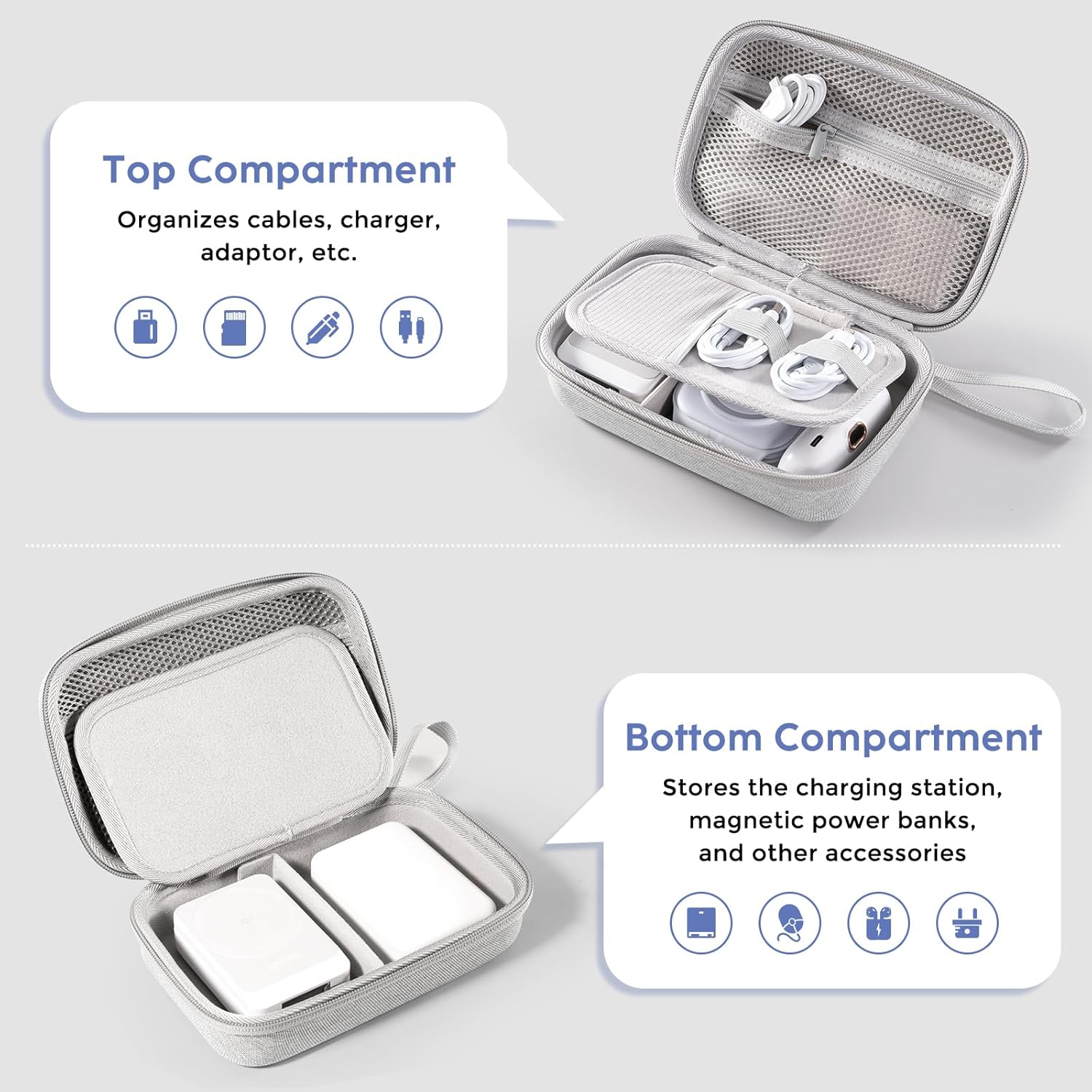 - Large Capacity: Portable hard EVA carrying case for organizing small electronics accessories, like MacBoook charger, cables, power bank, USB flash disk, SD card, mouse, earphone, power adapter, etc. External dimension: 8.07*5.31*2.95 in