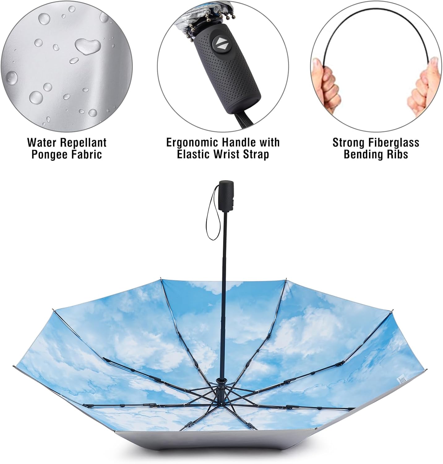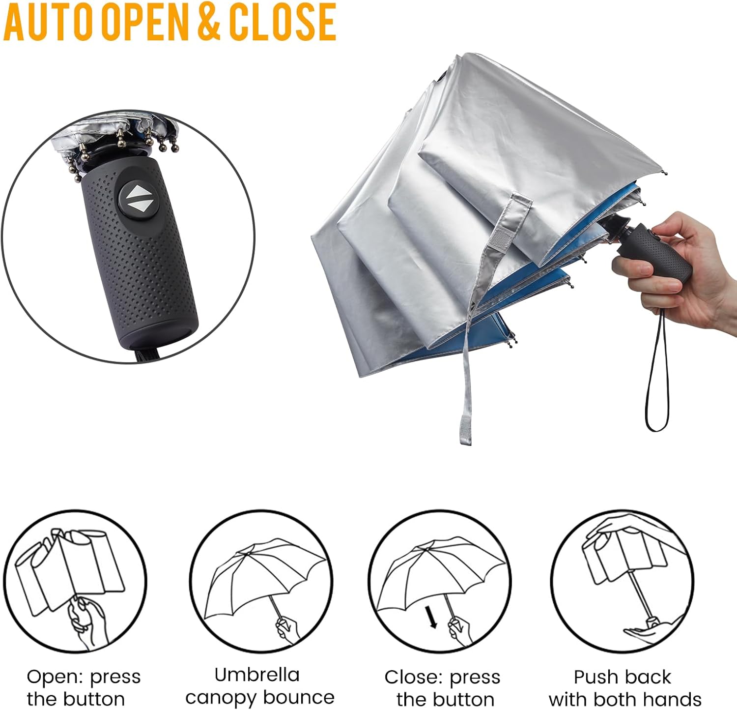 - Fully Automatic Umbrella: Auto open and close umbrella can be handy for quick entry into a car, building, or tent. You can quickly open or close the travel umbrella at the press of a button. A must-have umbrella for men and women.