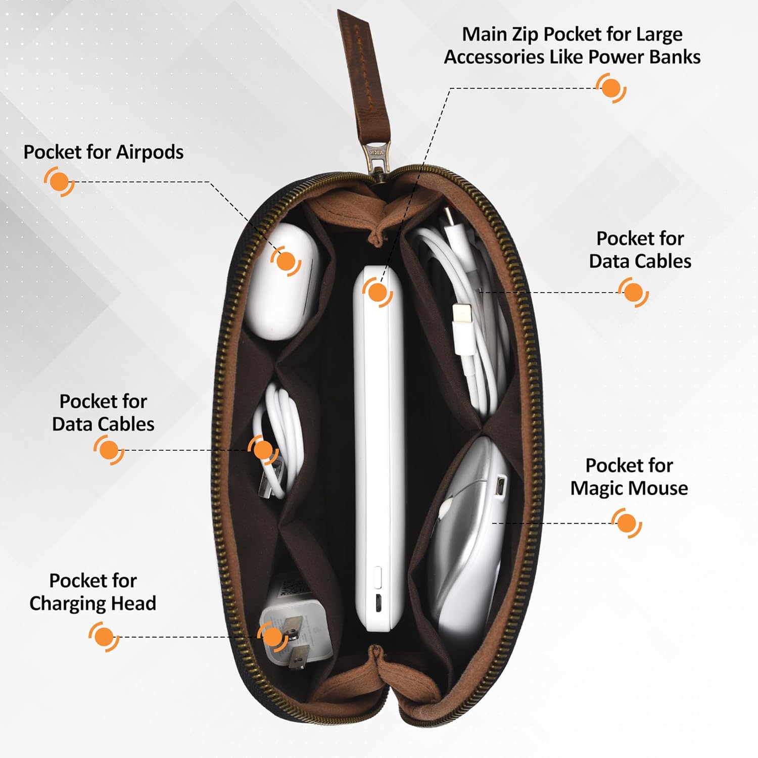 - Nutuch Leather Cable Organizer protects all your mini items, data cables, cords, USB, chargers, headphone, phone, mobile, power bank, passport, bank notes, cards and other electronic gadgets.