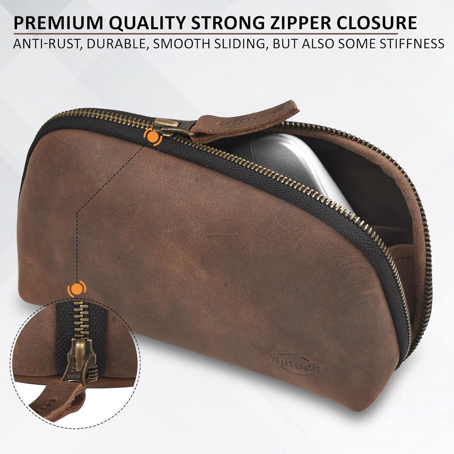 - Nutuch Leather Small Tech Pouch is made by the highest Quality of Full Grain Leather. The durability, softness, the unique texture ensures a long lasting life with full of Grace.