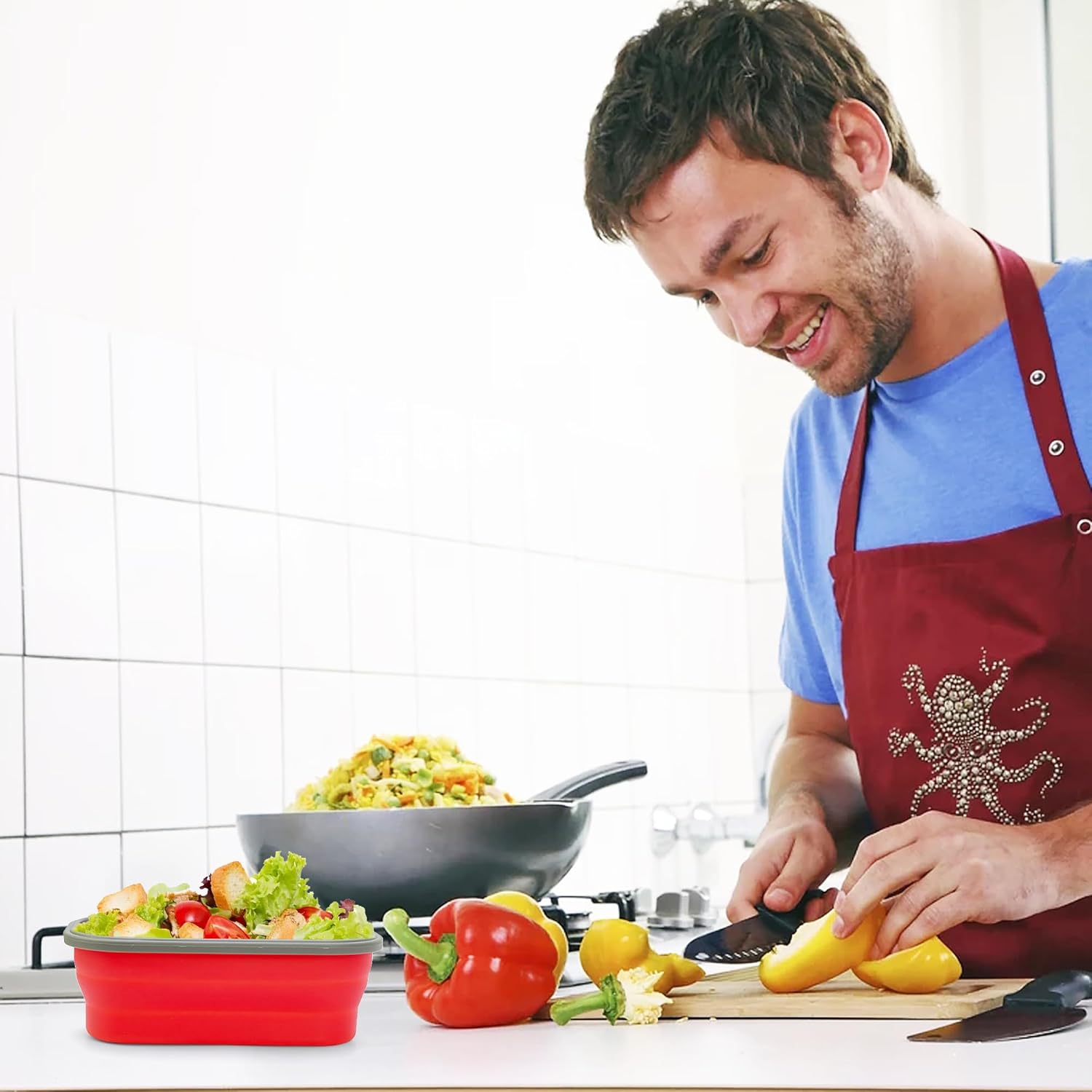 - Space-Saving Design: After collapsed, The collapsible silicone bento box reduces to a height of just 1.3 inches, making it perfect for easy storage and portability.