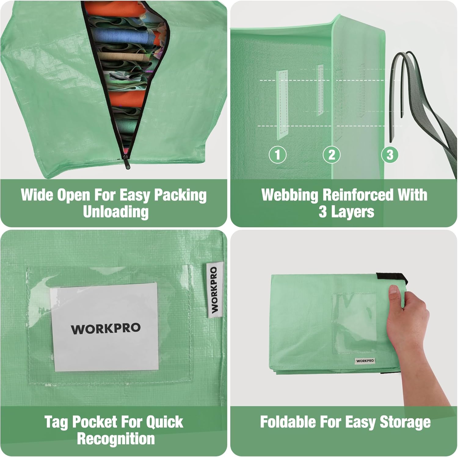 - Versatile Use: WORKPRO moving bags are not just great for moving. they can also be used for dust-resistant storage, such as keeping seasonal clothing or sports equipment, or for travel, such as packing camping gear or road trip essentials