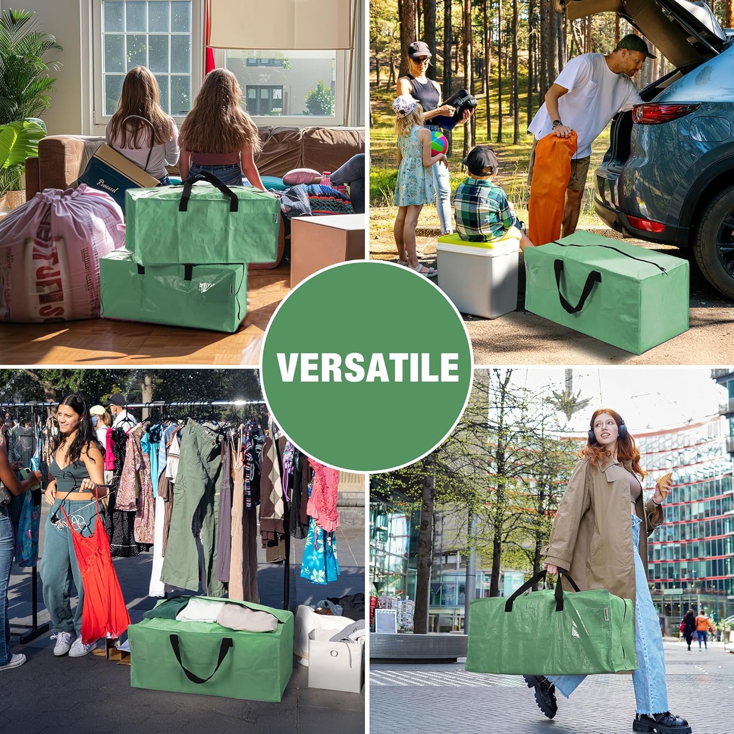 WORKPRO 6 Pack Extra Large Moving Bags with Zippers & Carrying Handles Backpack Straps, Heavy-Duty Storage Tote for Space Saving & Storage, Alternative to Moving Box (Green)