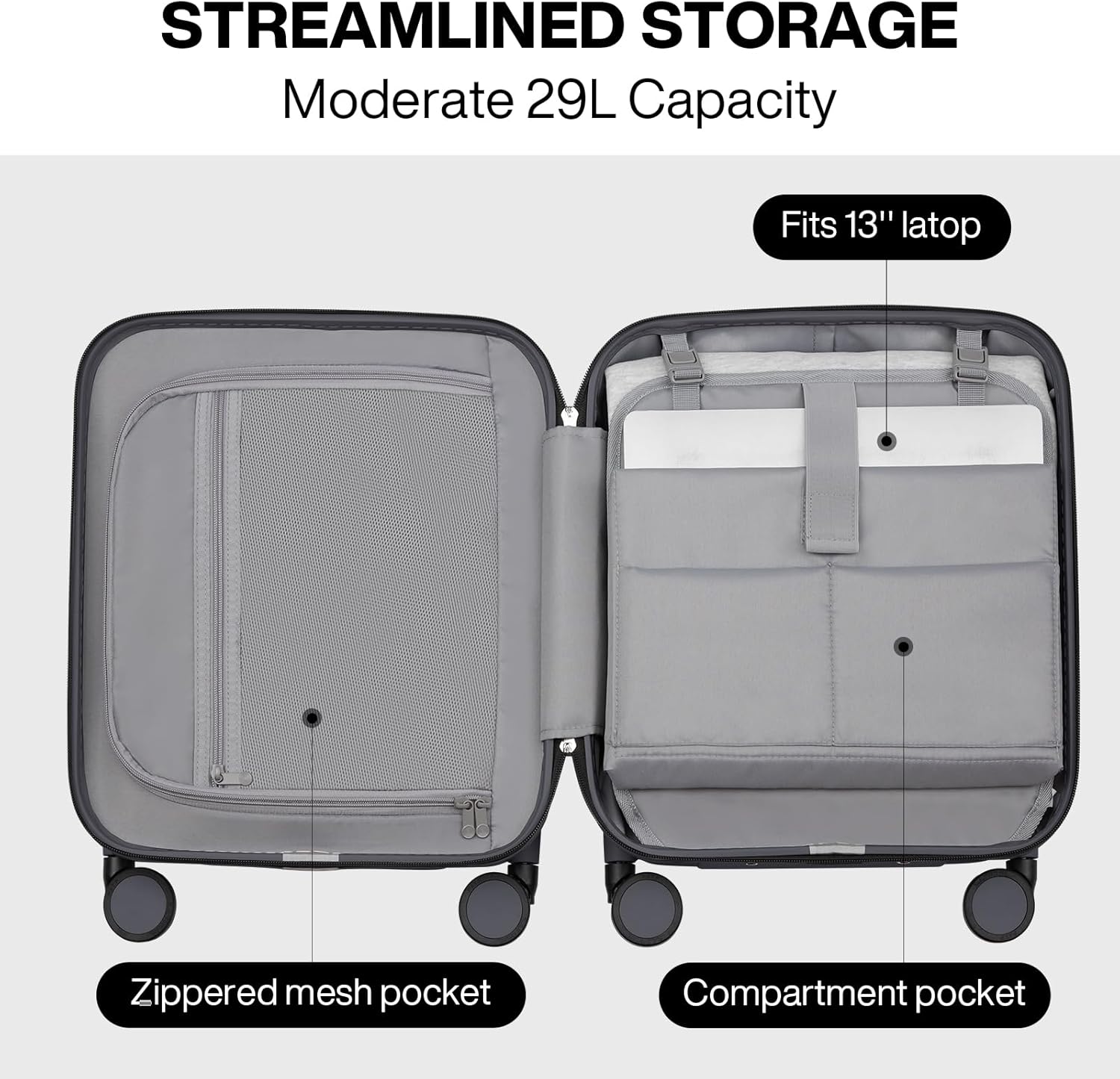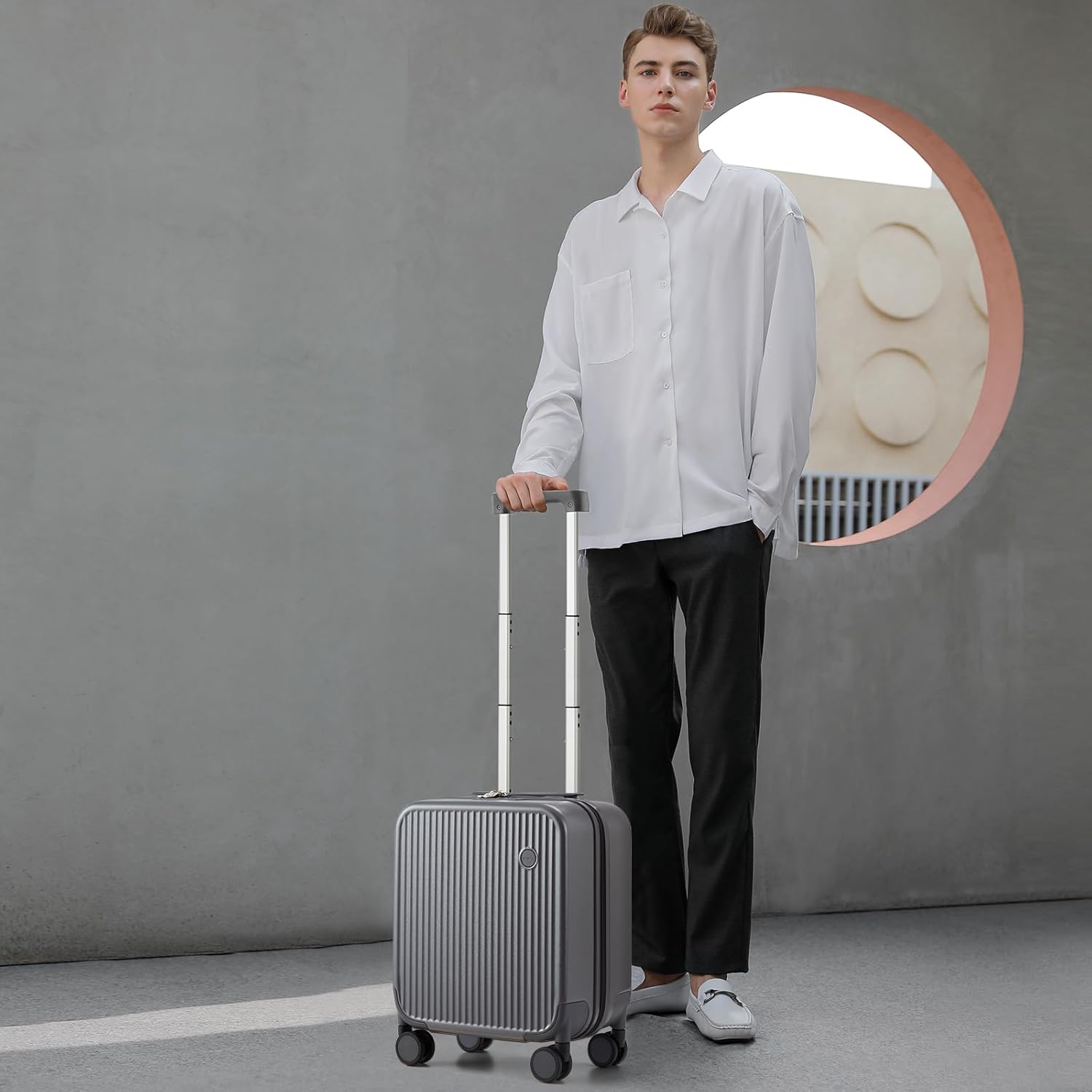 mixi Underseat Carry on Luggage 16 Inch Hardshell PC Suitcase with Spinner Wheels TSA Lock for Travel, Rock Gray