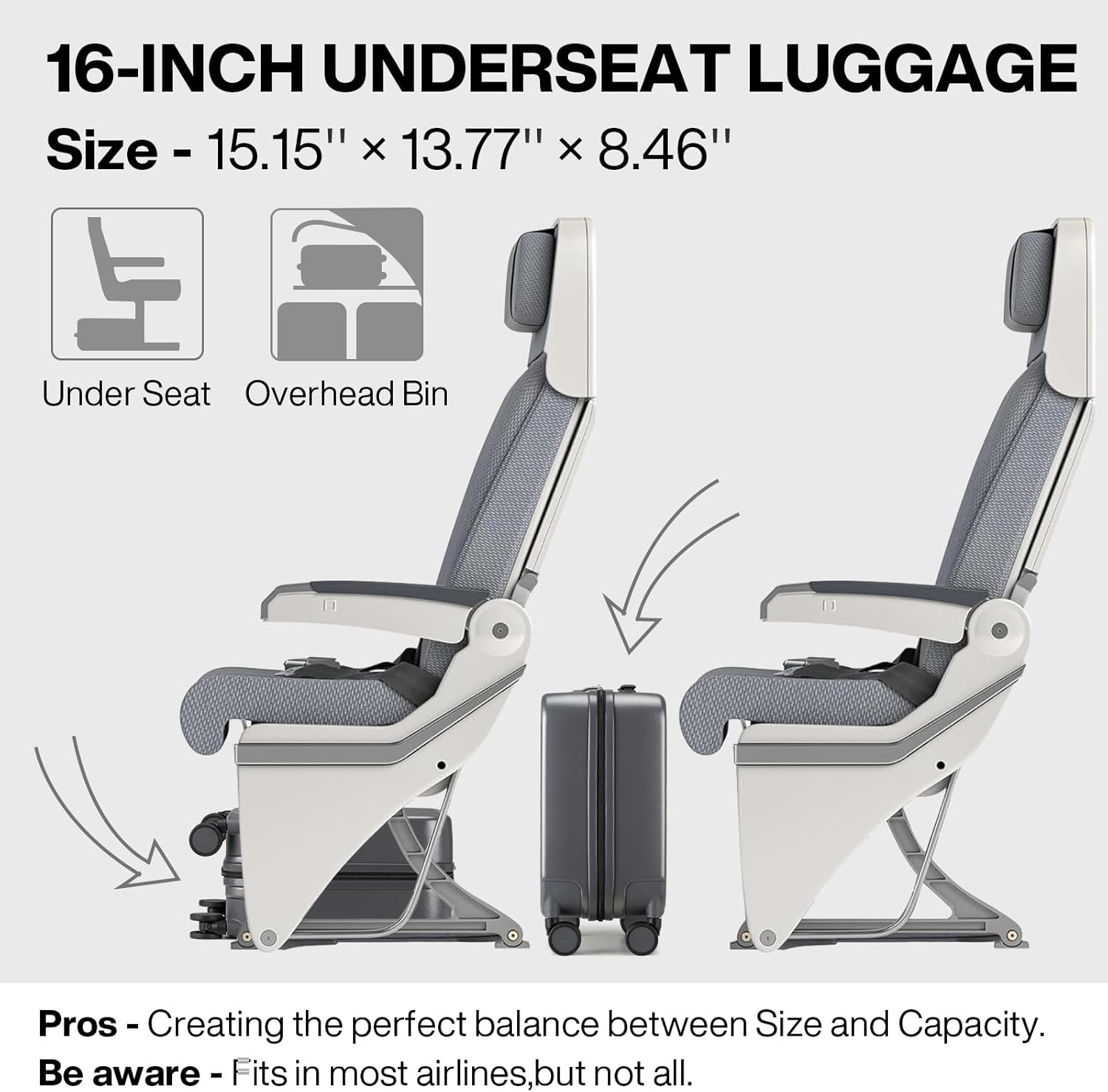 - 【Underseat And Carry On Size】Overall Dimensions: 13.8(L)x8.46(W)x17.32(H) Inches, Weight: 6.83 lbs. The luggage is designed to fit in the overhead bin or under most airline seats . Yet please do check with the airline you take, as overhead bin and under seat space may vary.