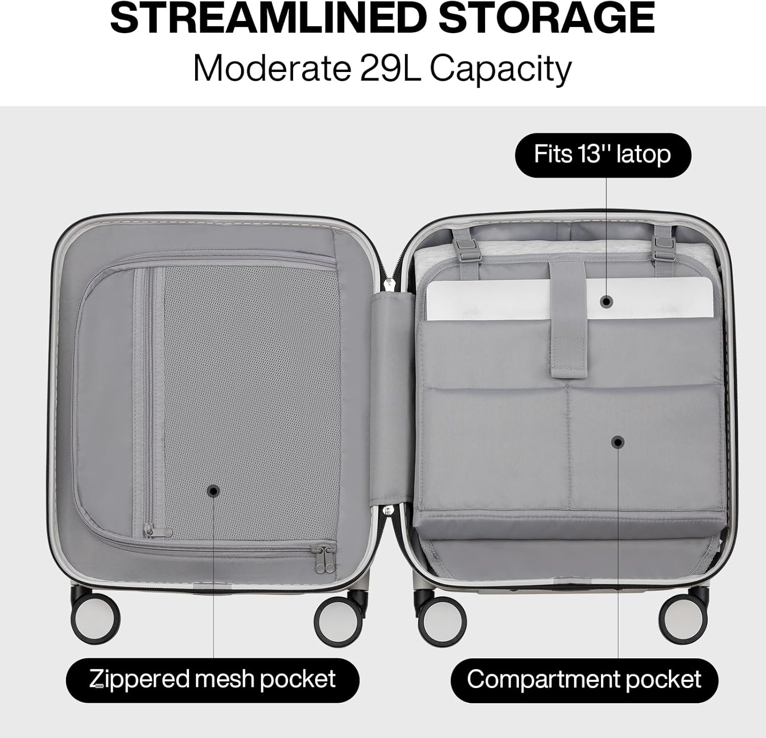 mixi Underseat Carry on Luggage 16 Inch Hardshell PC Suitcase with Spinner Wheels TSA Lock for Travel, Smoke White