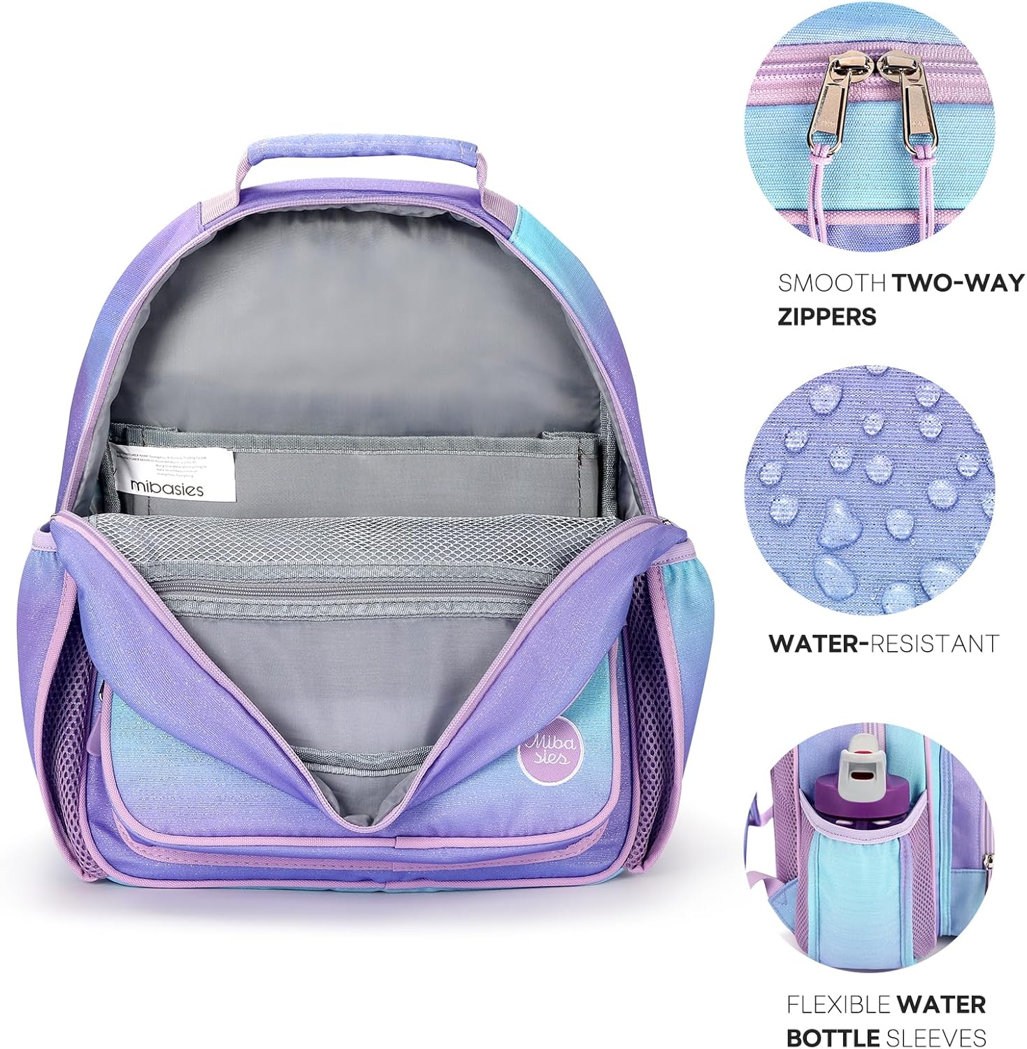 mibasies Girls Backpack 5-8: Lightweight Kids Backpacks for Girls - Girl Bookbag for Elementary School - Gradient Purple