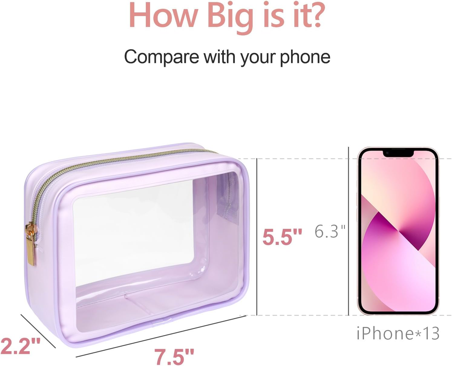 - Upgrade Colored Edge: Setting itself apart from the generic fully clear bags, our clear travel bags for toiletries upgrade an amazing colored edge. Enhancing the look as well as providing stain resistance, durability, and less susceptibility to scratches. The transparent PVC material for easy cleaning and reusable. NOTE: The colored edge is Plastic, NOT leather