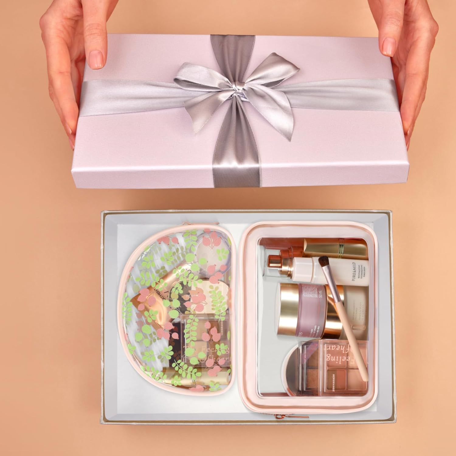 - TSA Approved Hassle-Free Pass: Our medium square clear travel bags is 8.07 x 2.35 x 5.91 inches, and the small clear shell bag is 7.48 x 2.36 x 5.31 inches, both complying with the 3-1-1 rules, ensuring a smooth journey through airport security and streamline security checks