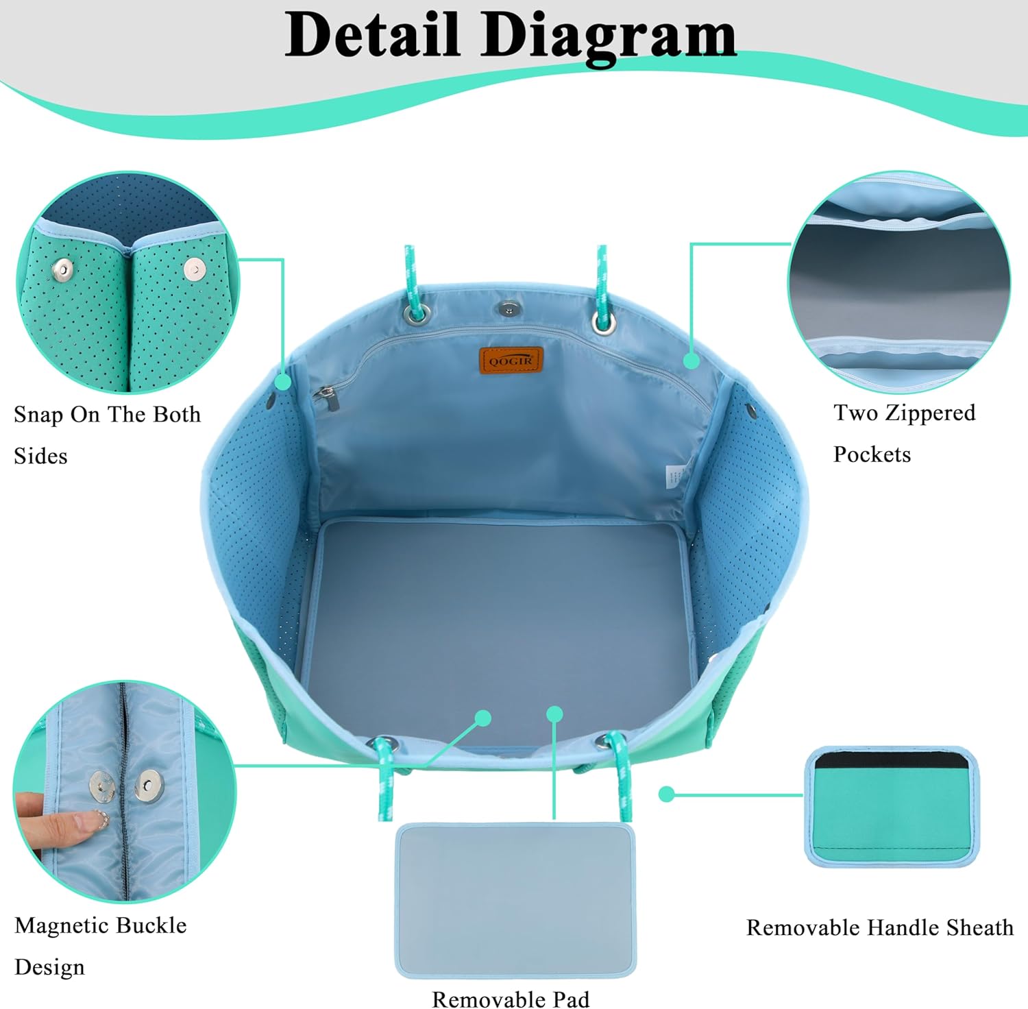 QOGiR Neoprene Multipurpose Beach Bag Tote with Inner Zipper Pocket … … … …