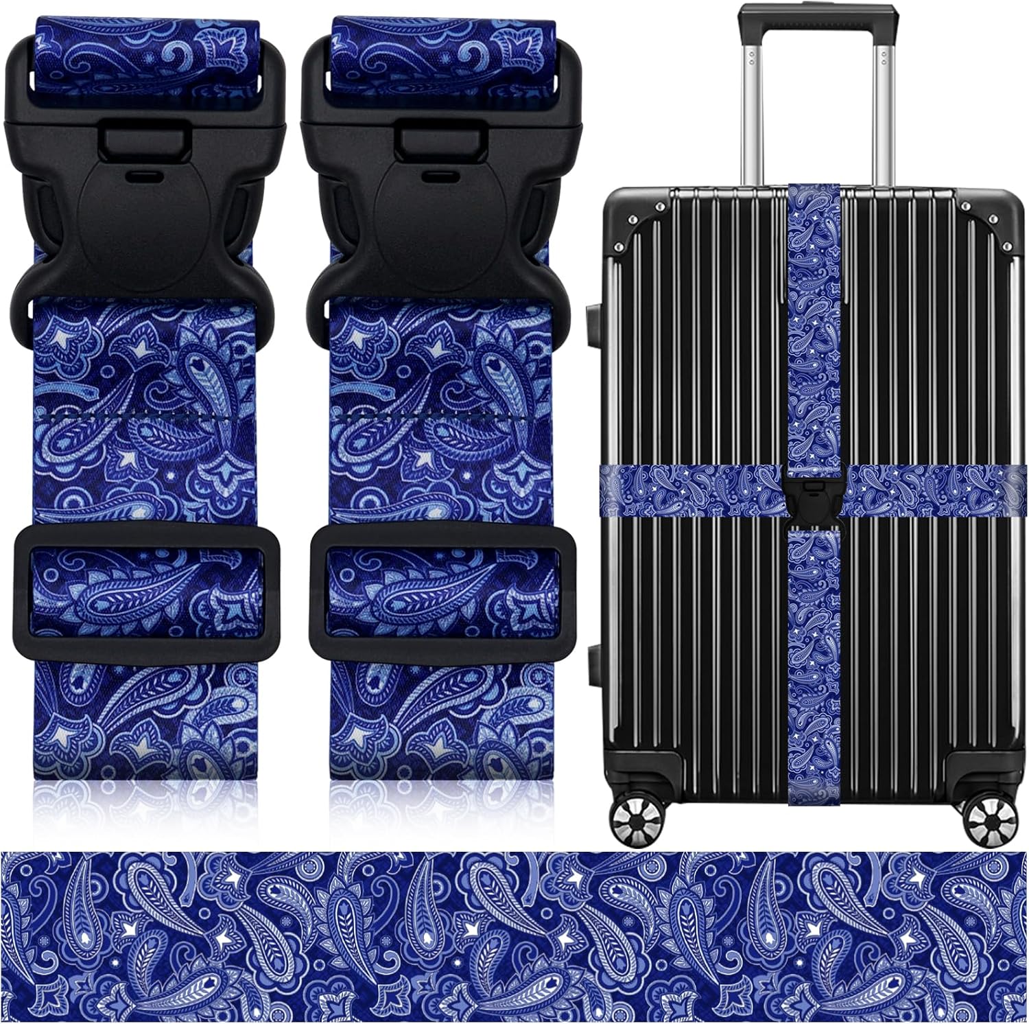 2 Pack Luggage Straps for Suitcases, Adjustable Travel Belt with Double Lock and Quick Release Buckle, Heavy Duty Nylon Bag Packing Strap, Bright Identifiers Business Travel Accessories-Blue Flowers