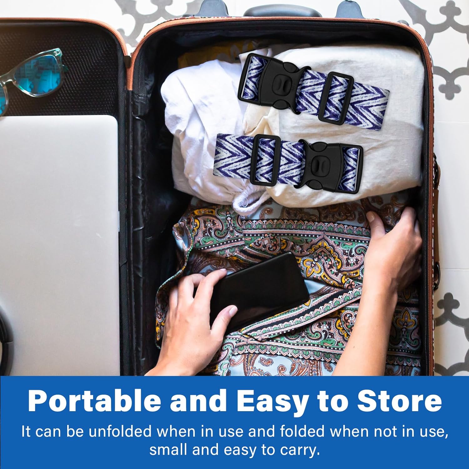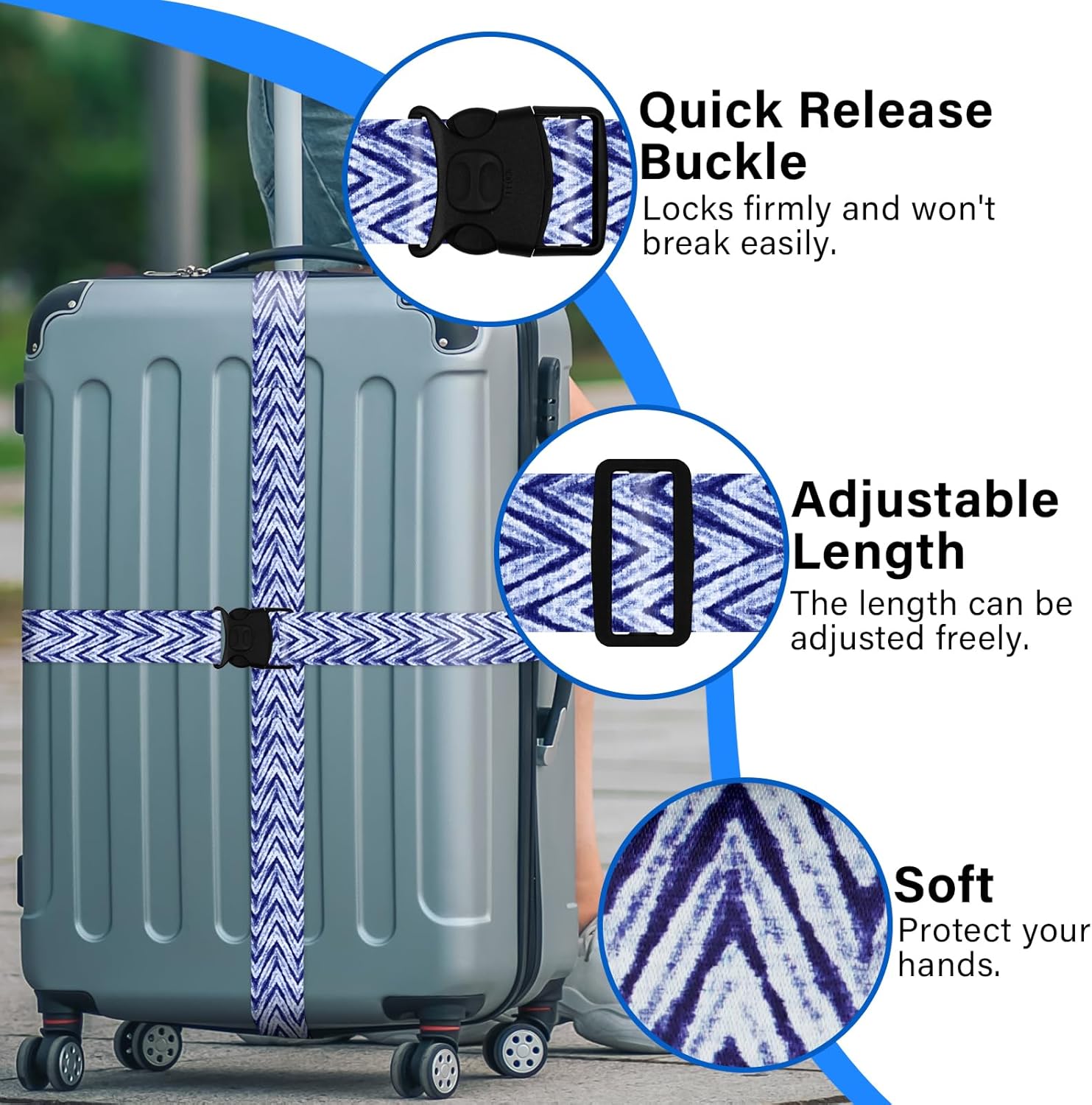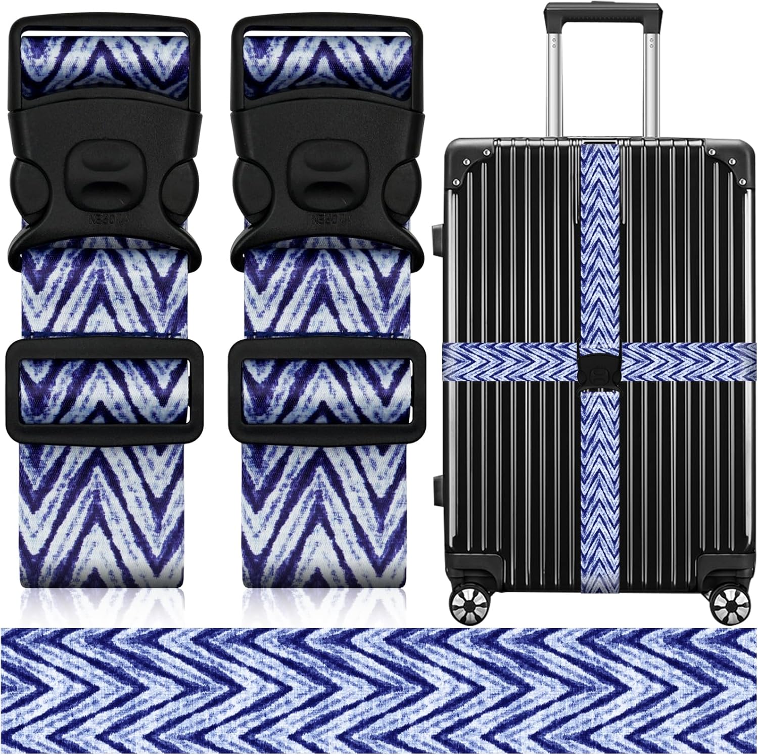 2 Pack Luggage Straps for Suitcases, Adjustable Travel Belt with Double Lock and Quick Release Buckle, Heavy Duty Nylon Bag Packing Strap, Unique Identifiers Business Travel Accessories-Blue Wave
