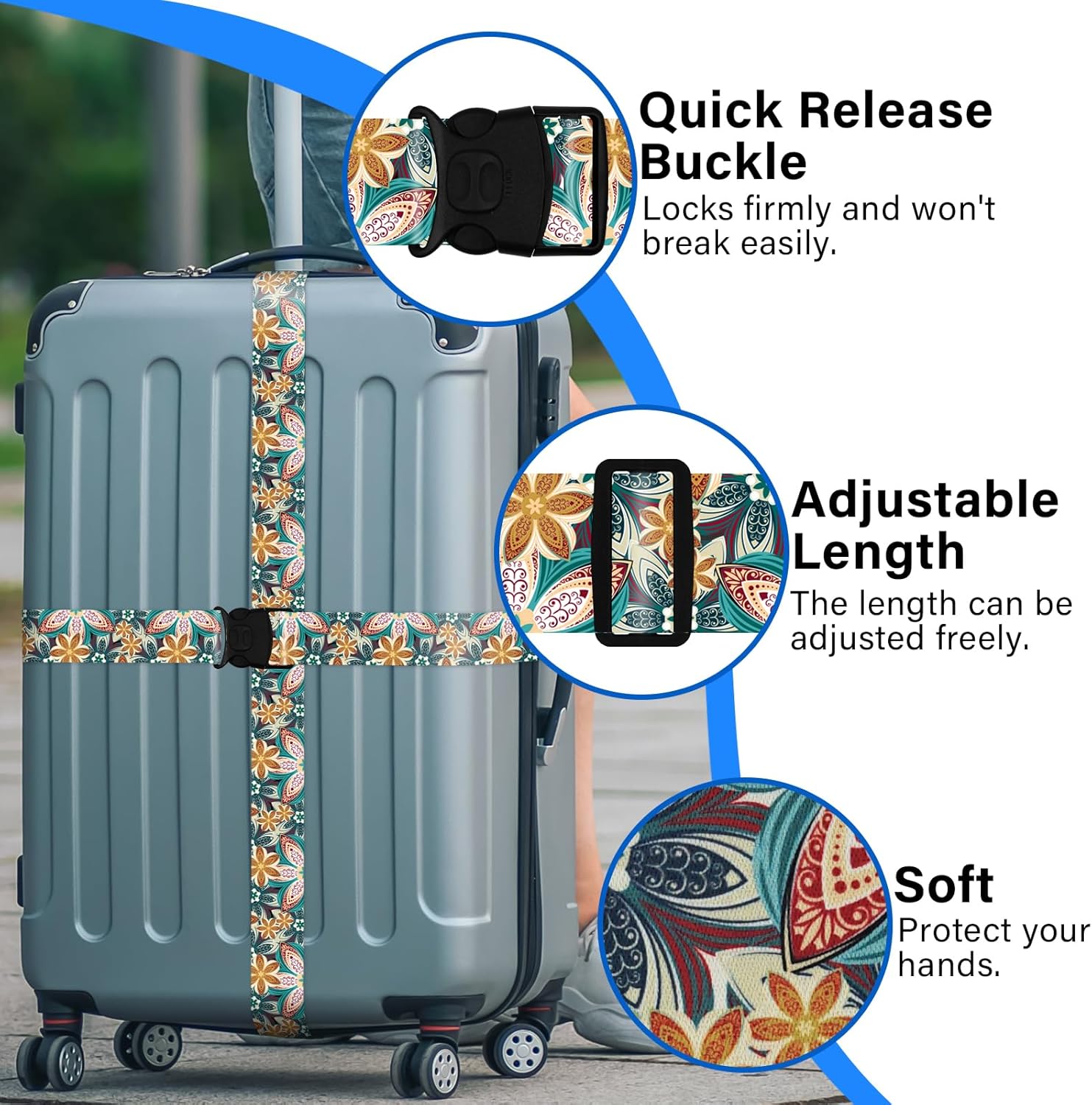 2 Pack Luggage Straps for Suitcases, Adjustable Travel Belt with Double Lock and Quick Release Buckle, Heavy Duty Nylon Bag Packing Strap, Unique Identifiers Business Travel Accessories-Green Flowers