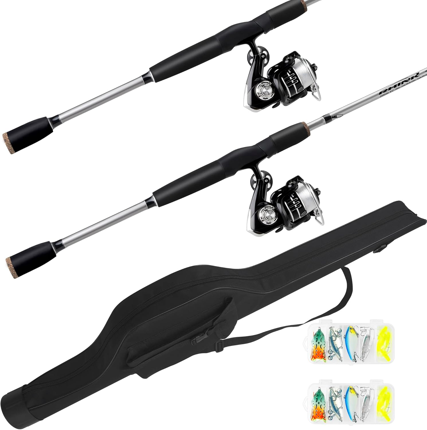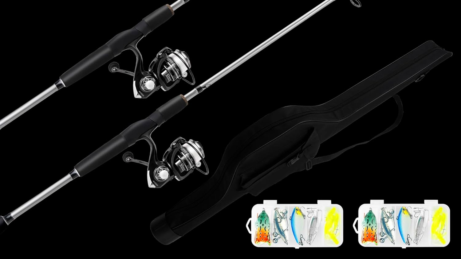 - Get every thing in 1 KT: 2 Pieces Spinning Reel and 7 FT Fishing Rod Combo with fising Line, 2 Boxe Lures included, everything can fit in 1 high quality storage bag