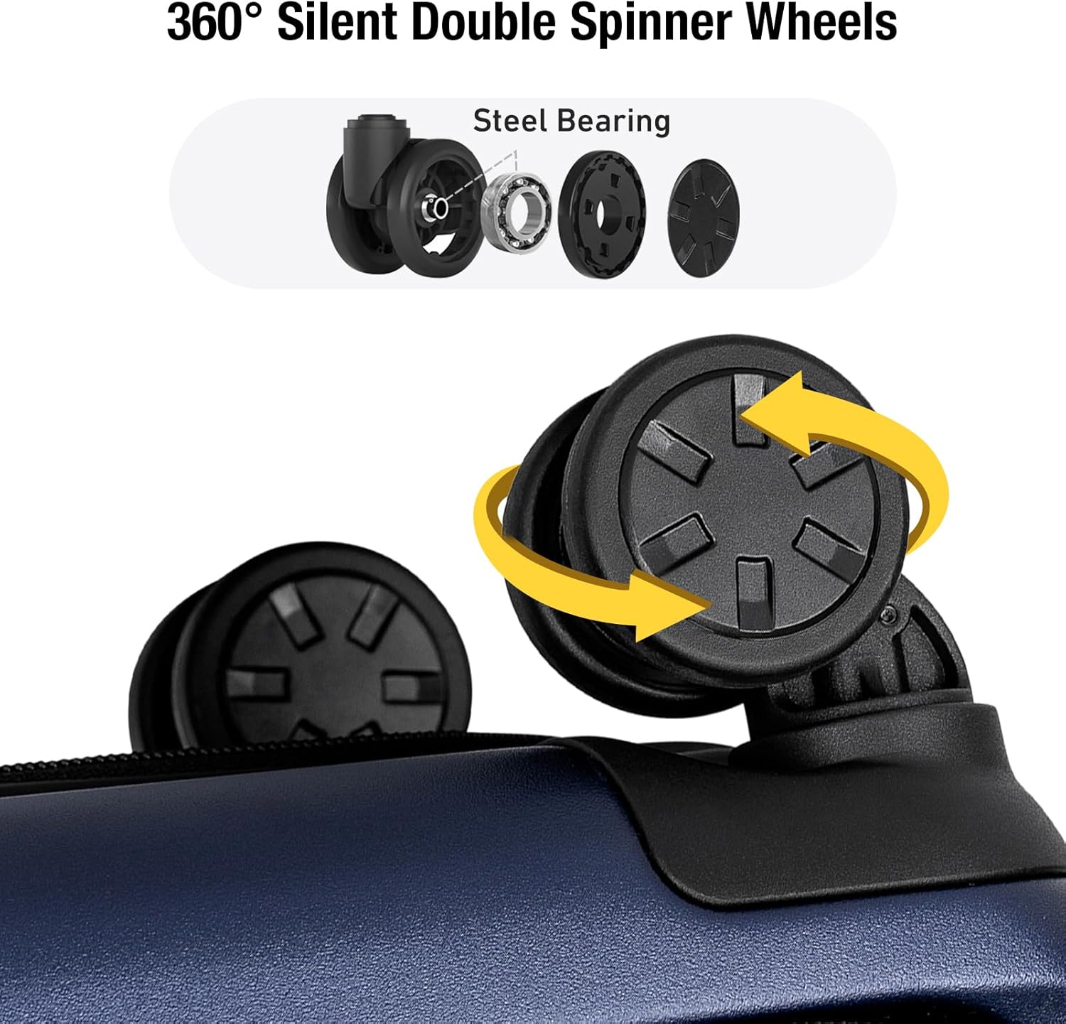 - 360° Spinner Wheels: Equipped with 360° silent spinner wheels, this suitcase glides effortlessly across various surfaces, including cobblestone roads and carpets. The durable wheels are designed for quiet operation, making it easy to maneuver through busy airports or uneven terrain.