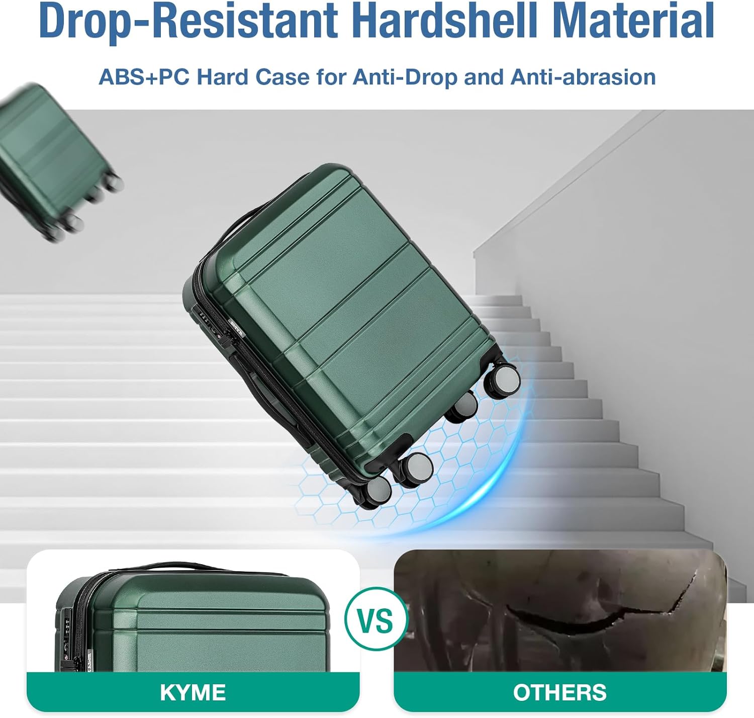 - HARDSIDE LUGGAGE: KYME carry on luggage 22x14x9 airline approved provides sturdy protection for your personal items and keeps looking good after your journey.These 20 inch suitcases with wheels features with superior strength,toughness and light weight