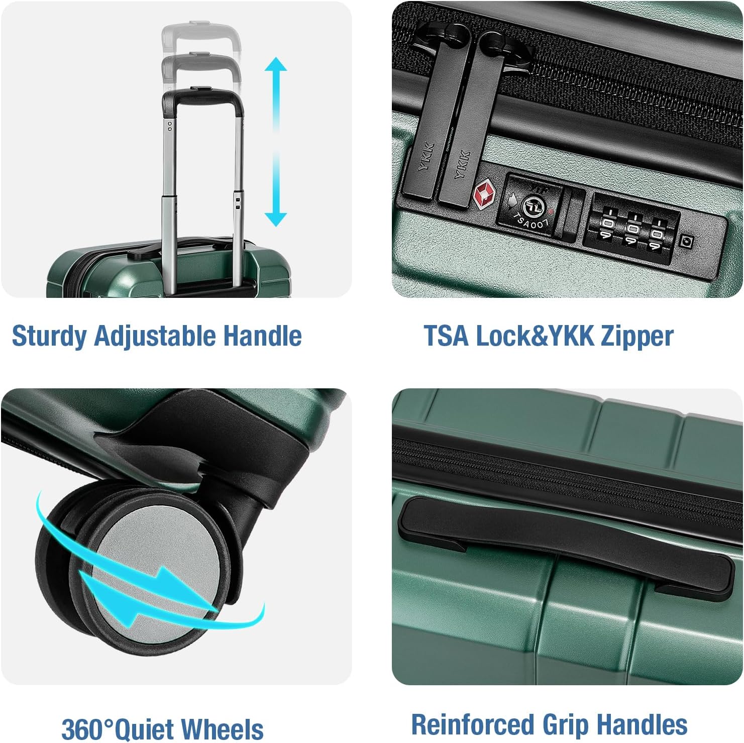 - SPINNER WHEELS LUGGAGE:KYME carry on luggage equiped with double 360°swivel wheels,rolling smoothly over a variety of surfaces.these 20in small rolling suitcase equiped with a 3-step handle adjustment for different heights.Combination TSA lock and YKK zipper keeps your peace of mind