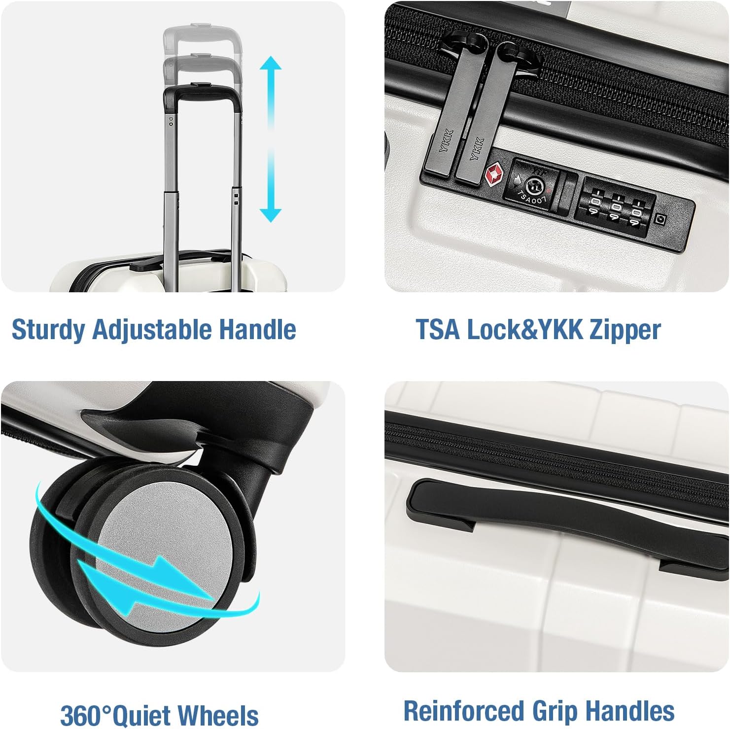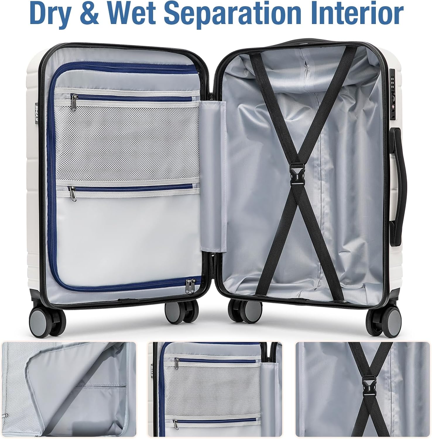 KYME Carry On Luggage 22x14x9 Airline Approved with TSA Lock Hard Shell Carry On Suitcase Lightweight Suitcases with Wheels Small Luggage for Men Women,Carry-On 20 Inch,White