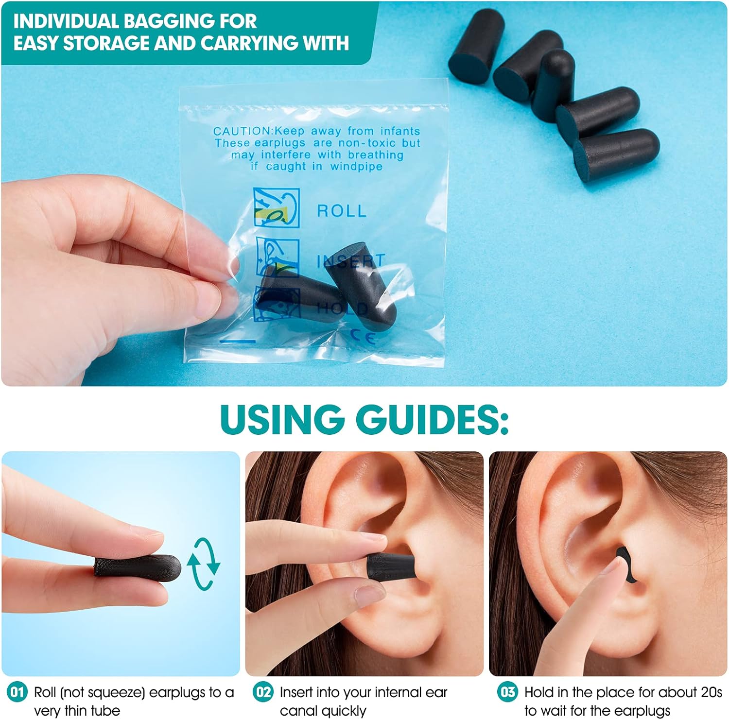 - 200 Pairs Individual Bagged Premium Quality Black Color Earplugs;