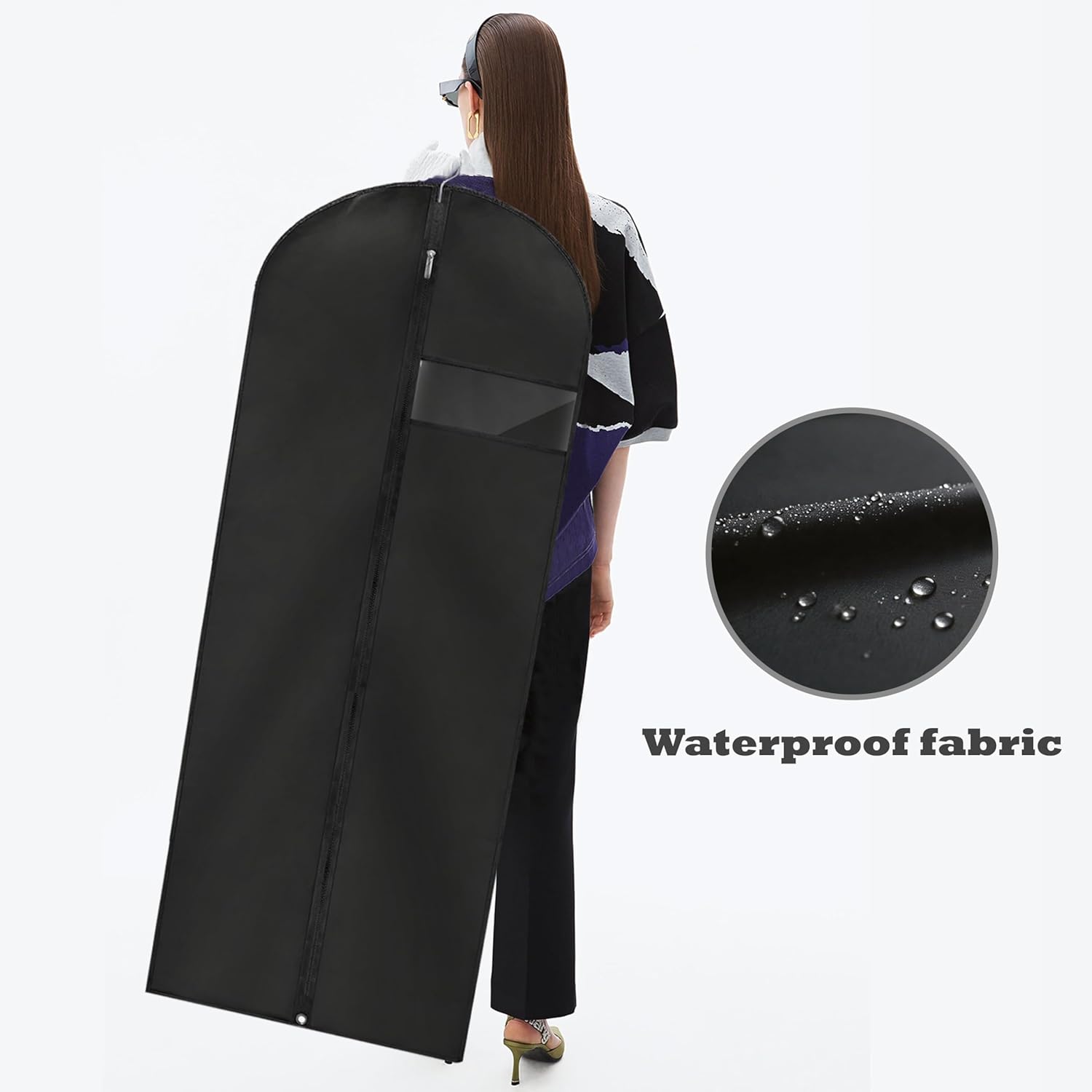 Dress Bags for Gowns Long, 65'' Garment Bags for Hanging Clothes, Suit Bag Cover for Storage and Travel, 2 Pack (Black)