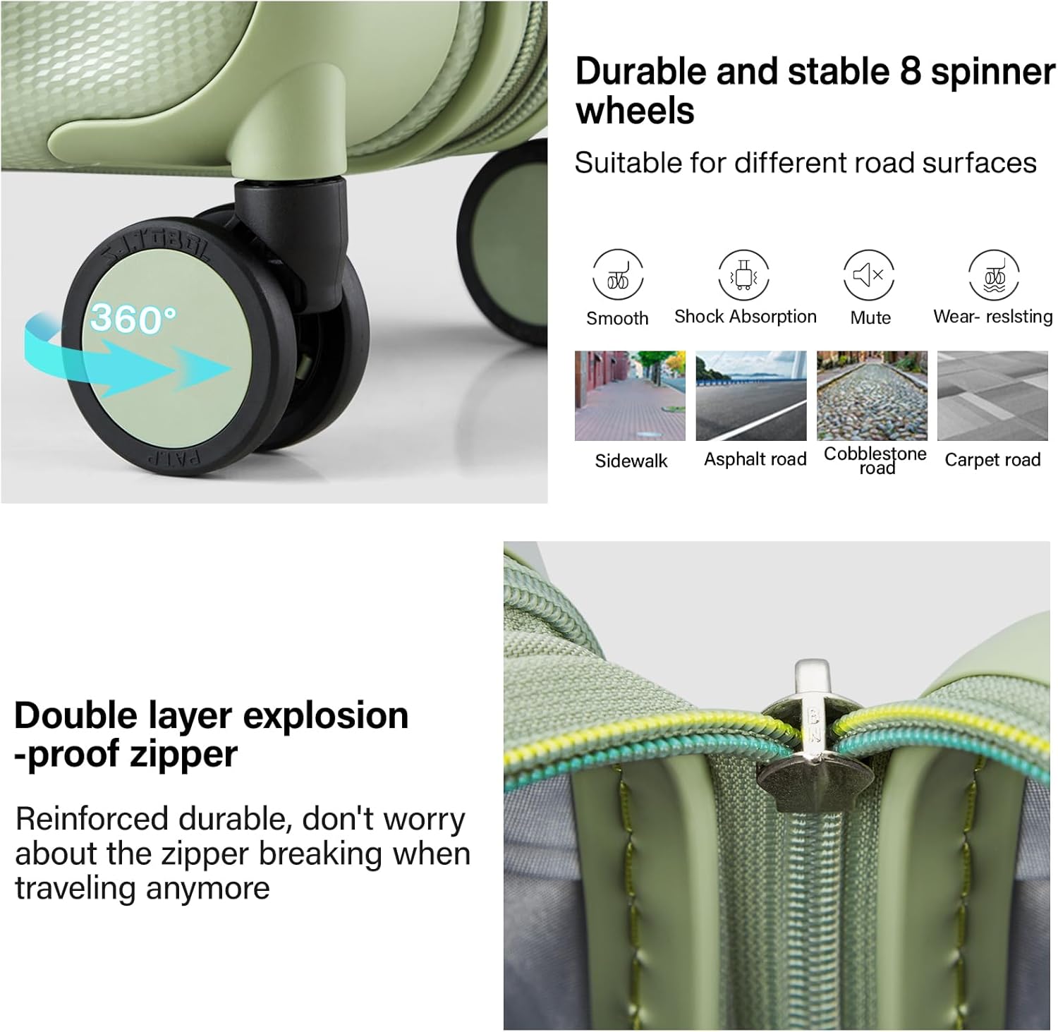 Hanke 24 Inch Expandable Checked Luggage Lightweight PC Hard Shell Luggage Suitcases with Wheels Travel Luggage Rolling Large Suitcase Travel Luggage Bag for Go to University.(Bamboo Green)
