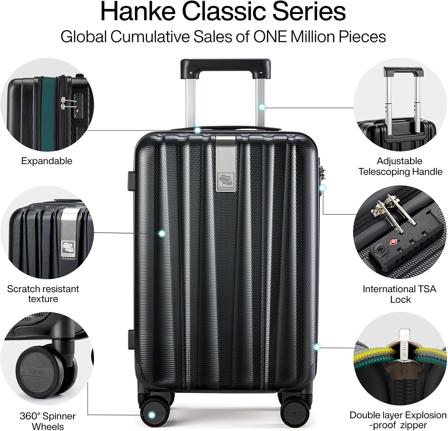 Hanke Expandable Hardshell Luggage Sets 3 piece Carry on Luggage with Wheels Suitcases Lightweight Checked Travel Luggage Rolling Large Suitcase Travel Luggage Bag Woman Men 20/24/29 Inch(Jet Black)
