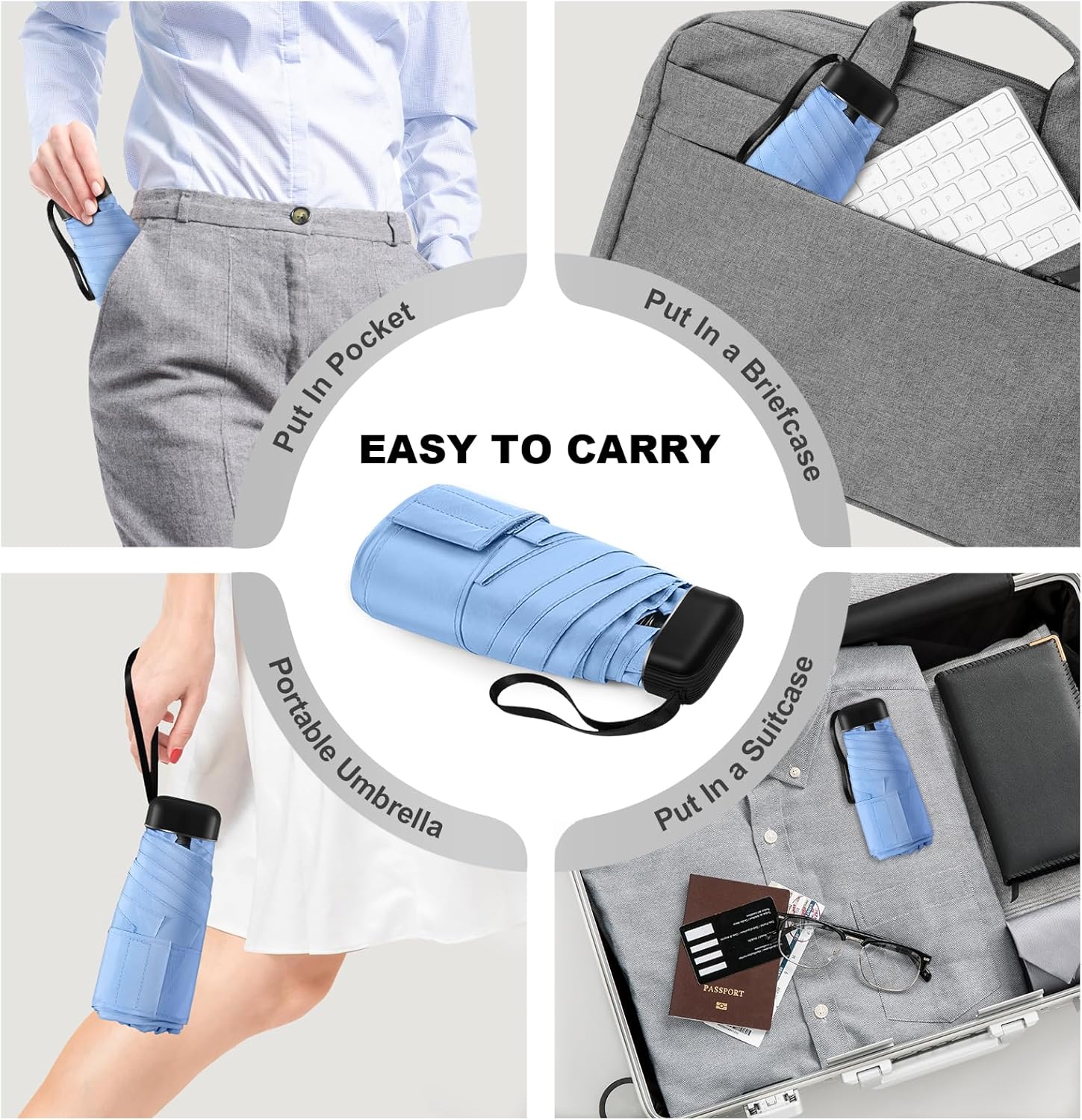 - Excellent Choice:This small travel umbrella is designed with convenience in mind, and is perfect for keeping you dry in unexpected rain showers or shielding you from the sun on hot and sunny days