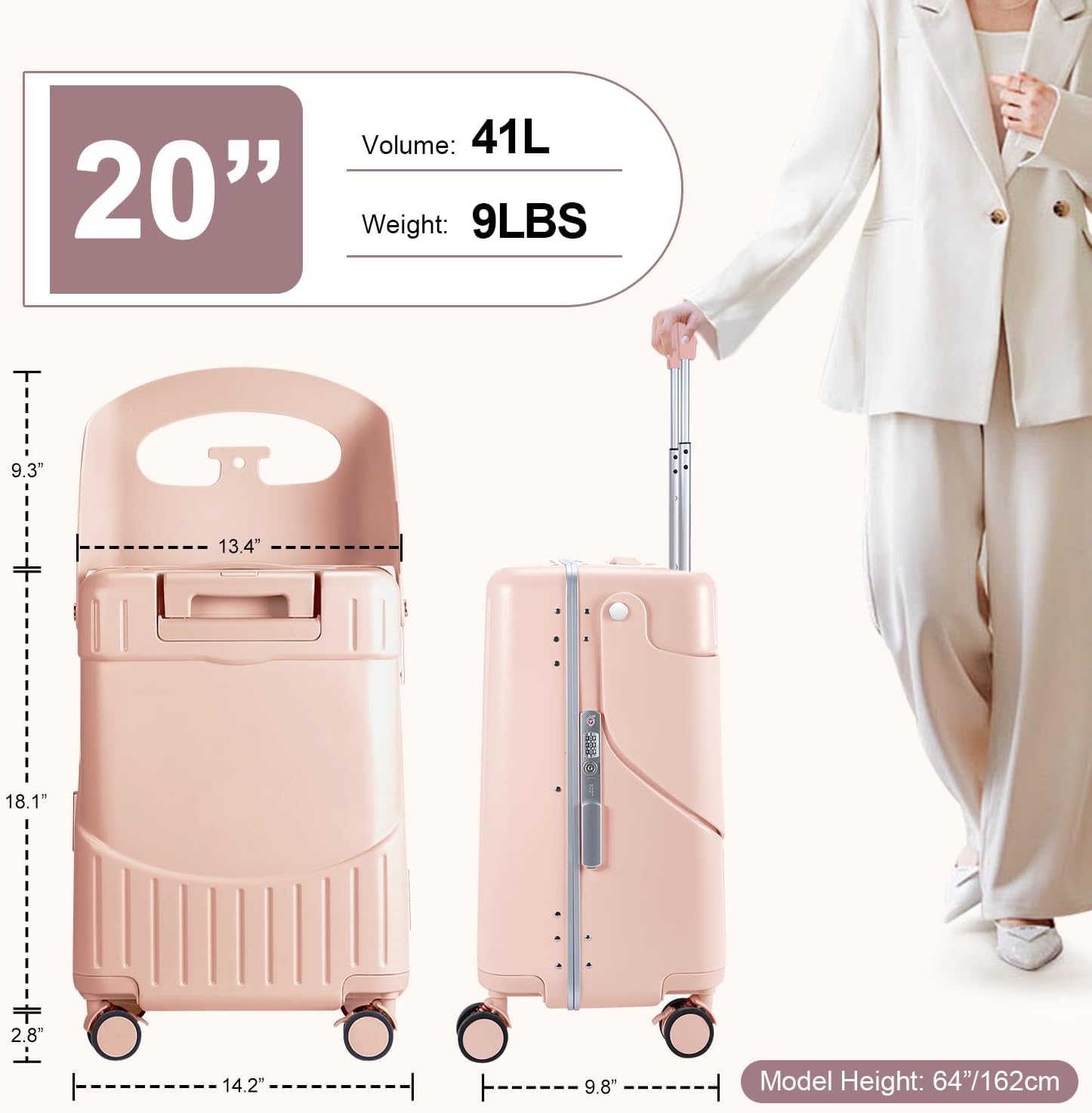 MRPLUM Ride On Luggage with Seat for Kids&Adults with Seat Belt,Hard Shell Lightweight Rolling Spinner Wheels Travel Luggage with TSA Lock,20 inch,Pink