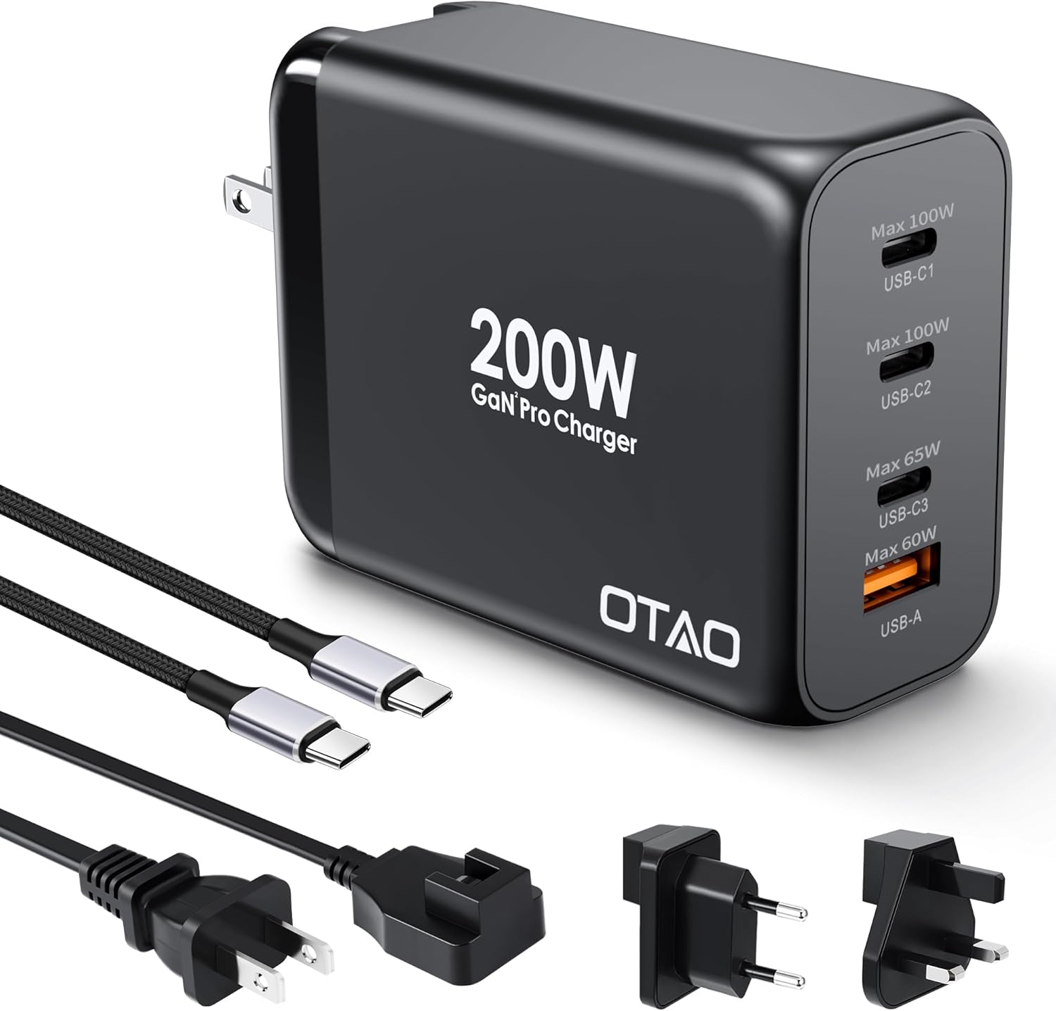 - What You Get: A 200W GaN Wall charger, A 5ft AC Power Cord , A UK Plug, A EU Plug, A Instruction.