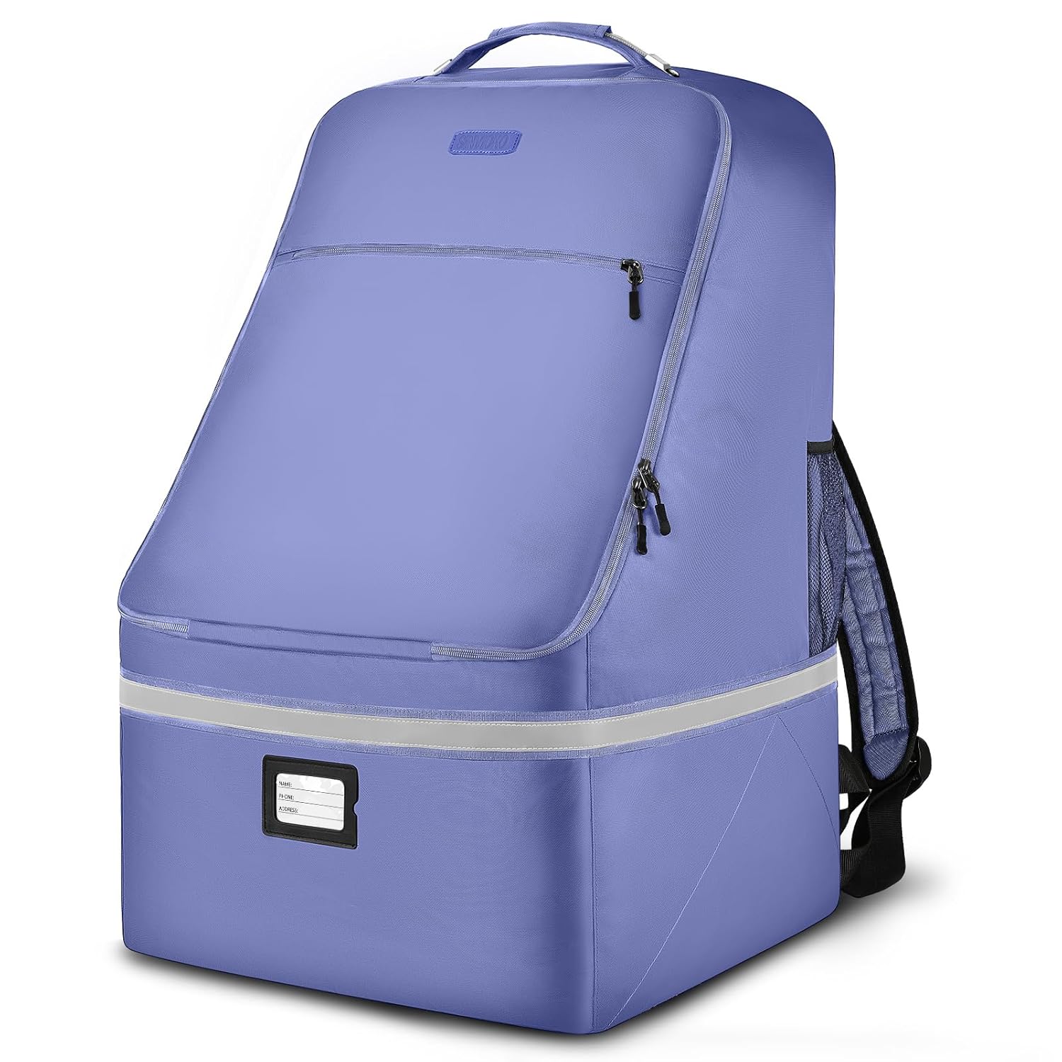 - Comfortable: A rugged handle with steel cable on the top is easy for you to carry with a hand.In addition, there are reflective strips on the strap, which is convenient for you to travel at night. Padded interior wings and internal fixing strap hold infant car seat in its place.Padded backpack straps and waist strap are adjustable, providing a comfortable, carrying option for parents. Ergonomic infant car seat travel bag for airplane.