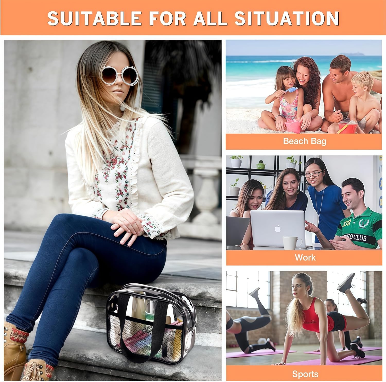 - 【Portable & Reusable with Easy Cleaning】Designed with a sturdy handle, these clear toiletry bags are convenient to carry, whether you're heading to the gym, travel, office, beach, or camping. PVC material is easy to clean after use, just wipe it with a cloth to keep them looking fresh and ready for your next trip.