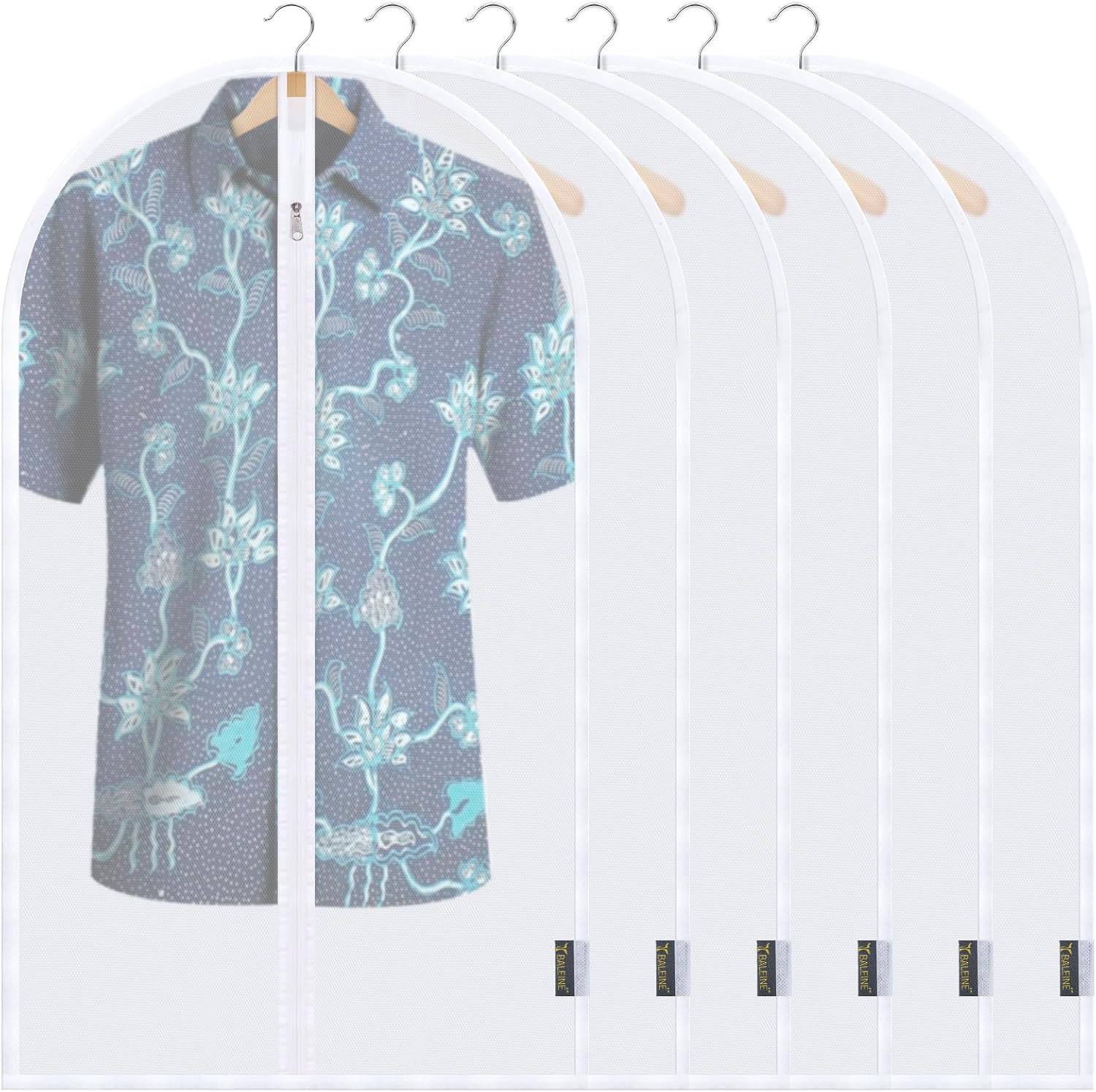 BALEINE 40'' Translucent Garment Bags, 6 Packs PEVA Dress Bag for Closet Clothes Dresses Suit Coats Storage (White, 6PK)