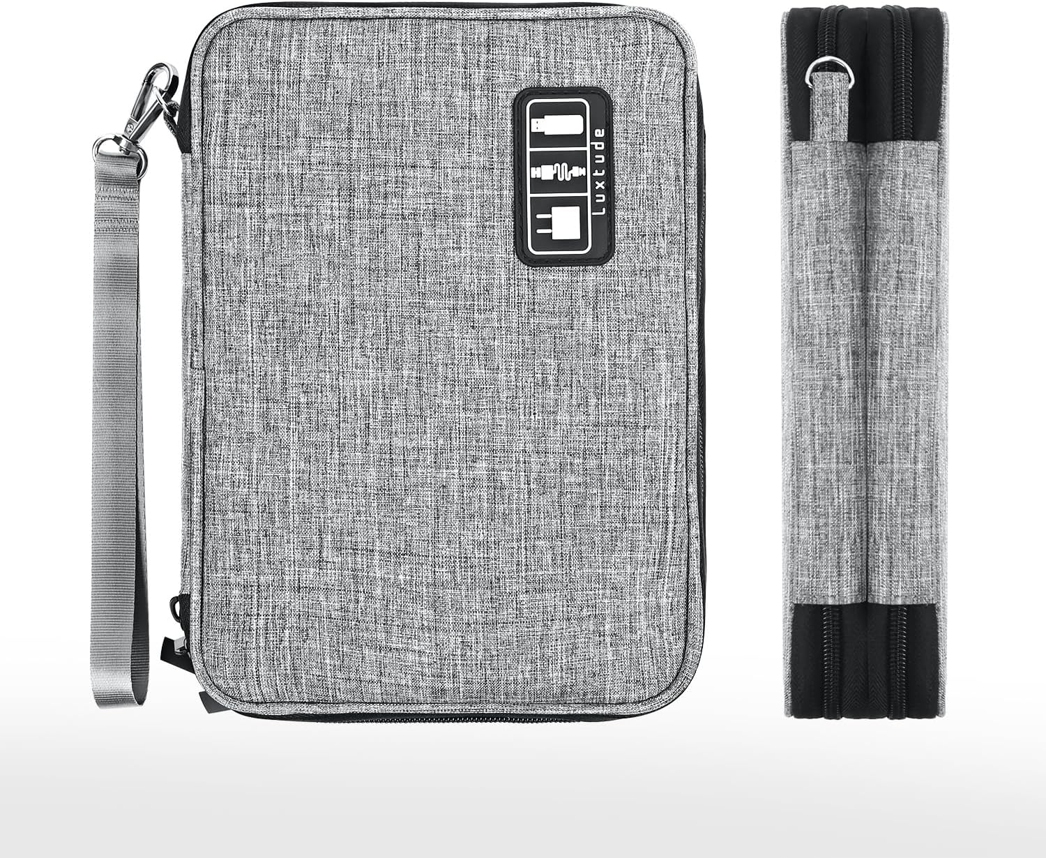 Luxtude Electronics Organizer, Portable Cable Organizer Bag for iPad 7.9'', Double Layer Travel Tech Bag&Cord Storage, Compact Cord Case&Charger Pouch,Electronics Carring Case for Phone/USB