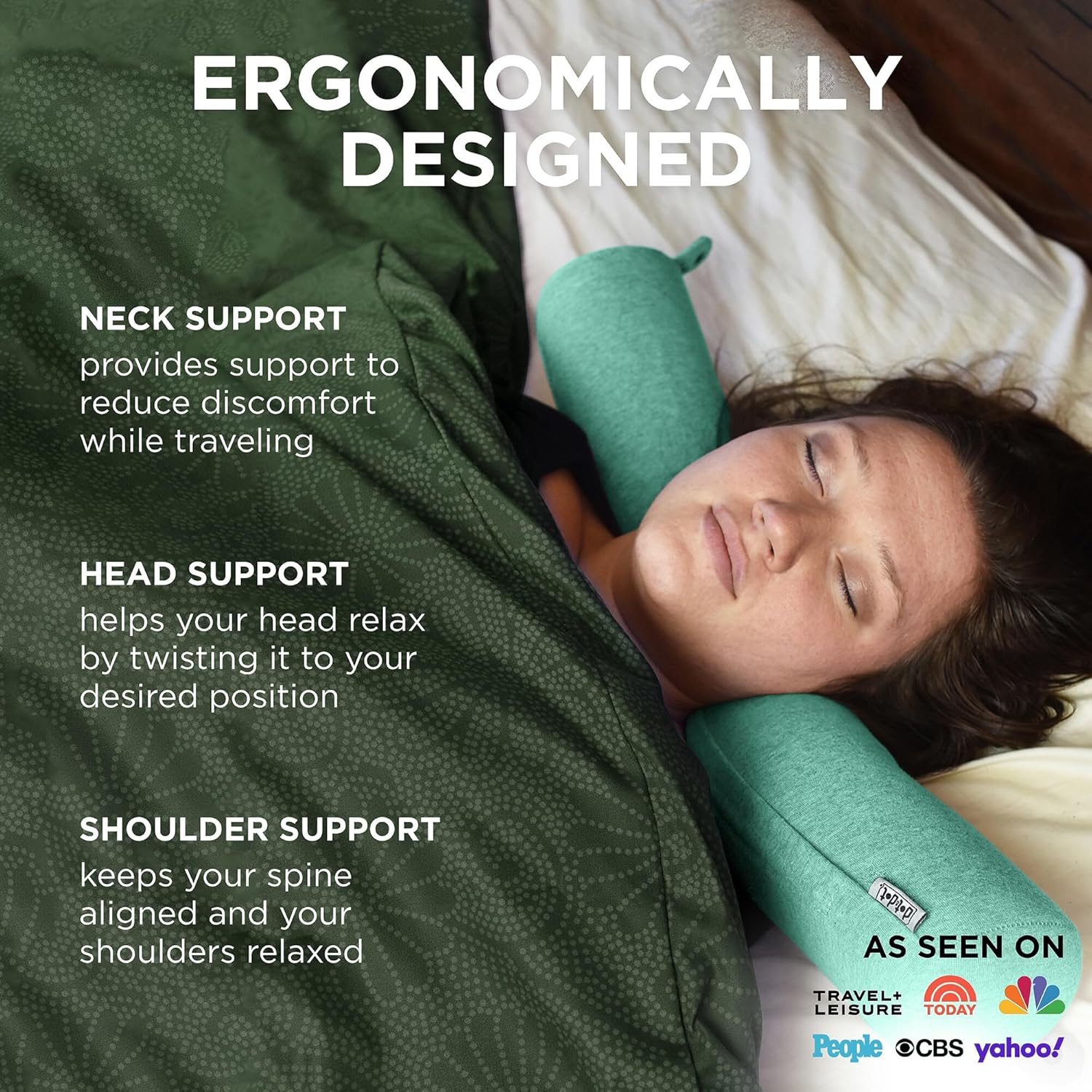 Dot&Dot Twist Memory Foam Travel Pillow for Airplanes - Travel Neck Pillow for Sleeping - Airplane Pillow for Neck Support - Adjustable, Bendable Neck Roll Pillow (Mint, One Size)
