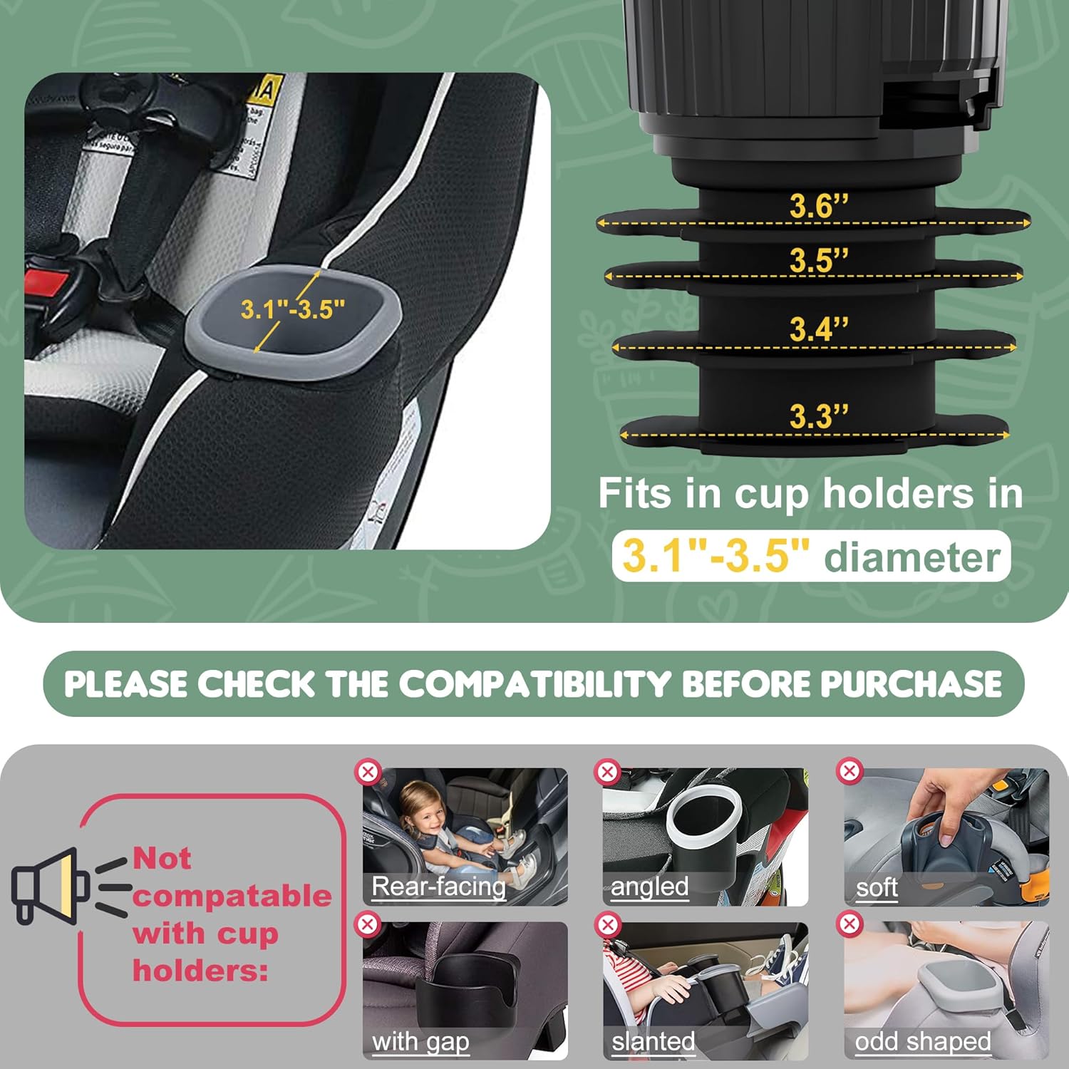 - SUITABLE FOR 3.1''-3.5'' DIAMETER CUP HOLDER: This tray is a universal design that can adapt to most common child seats on the market. Since it is universal designed, it may not fit all cup holders. The tray fits in cup holders in 3.1''-3.5'' diameter. If you have any questions or are unsure about product compatibility, please contact us and we will be there anytime.