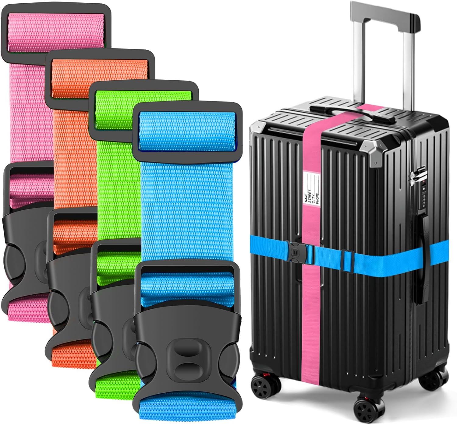 BILIONE Luggage Straps TSA Approved Add a Bag Premium Accessory for Travel Bag Closure (Mixed Color, 4)