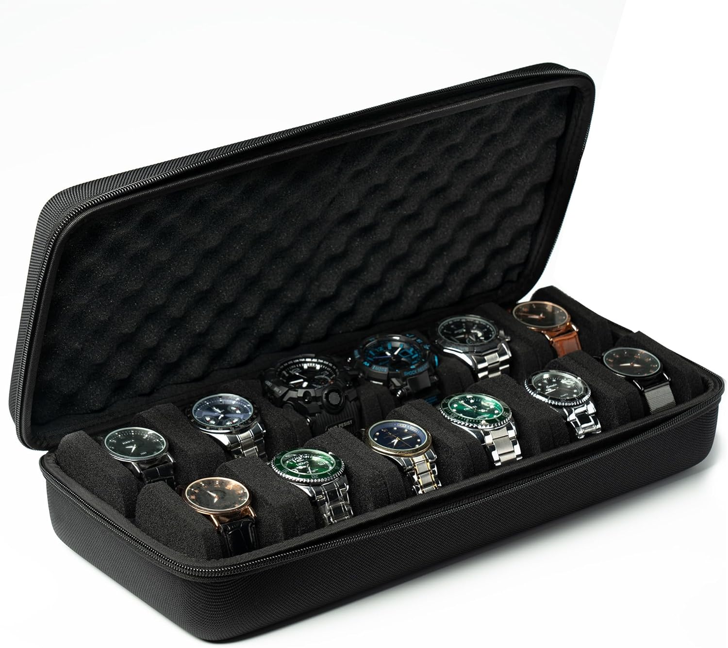 12 slots Watch Case, hard watch travel case, storage box, padded case for watch display and organization