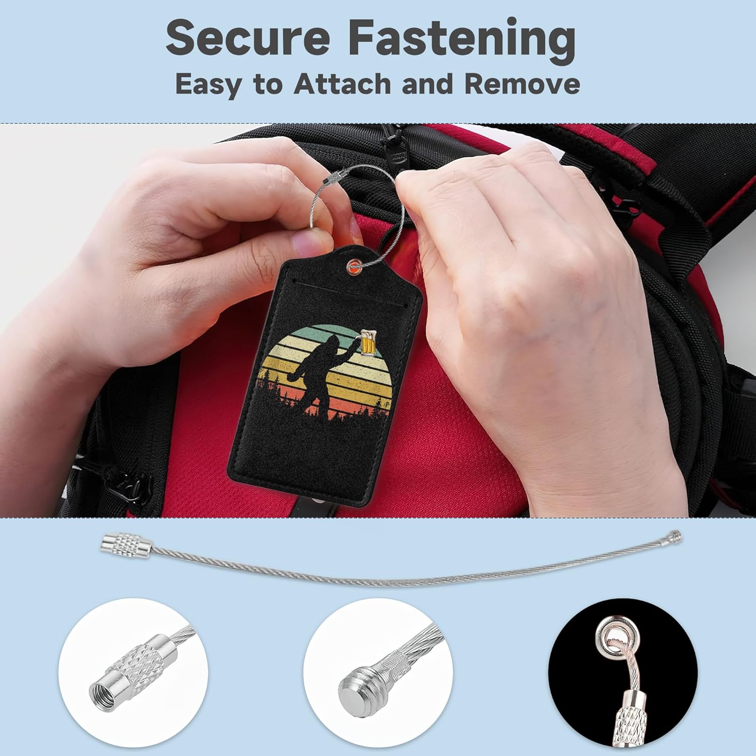 2 Pack Leather Luggage Tag for Suitcase Bigfoot Love Drinking Beer Unique Travel Tags with Privacy Cover ID Label & Stainless Steel Loop for Men and Women Baggage