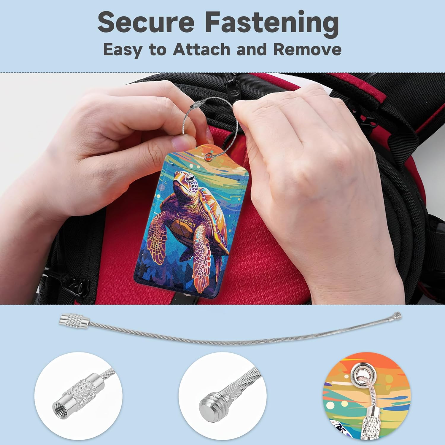 Set of 2 Luggage Tags for Suitcases, Leather Watercolor Sea Turtle Baggage Tags with Stainless Steel Loop, Privacy Name ID Card Cover Kawaii Travel Labels for Women Men Kids Girls