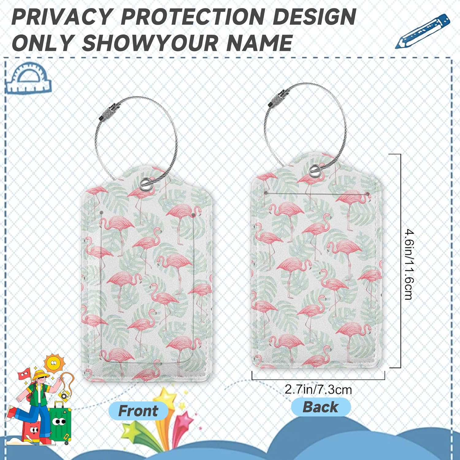 - [Enhanced Privacy] Equipped with a discreet back cover, these baggage tags shield your personal information from prying eyes, offering added security and peace of mind during your journeys. Travel with confidence and without the worry of personal data exposure.