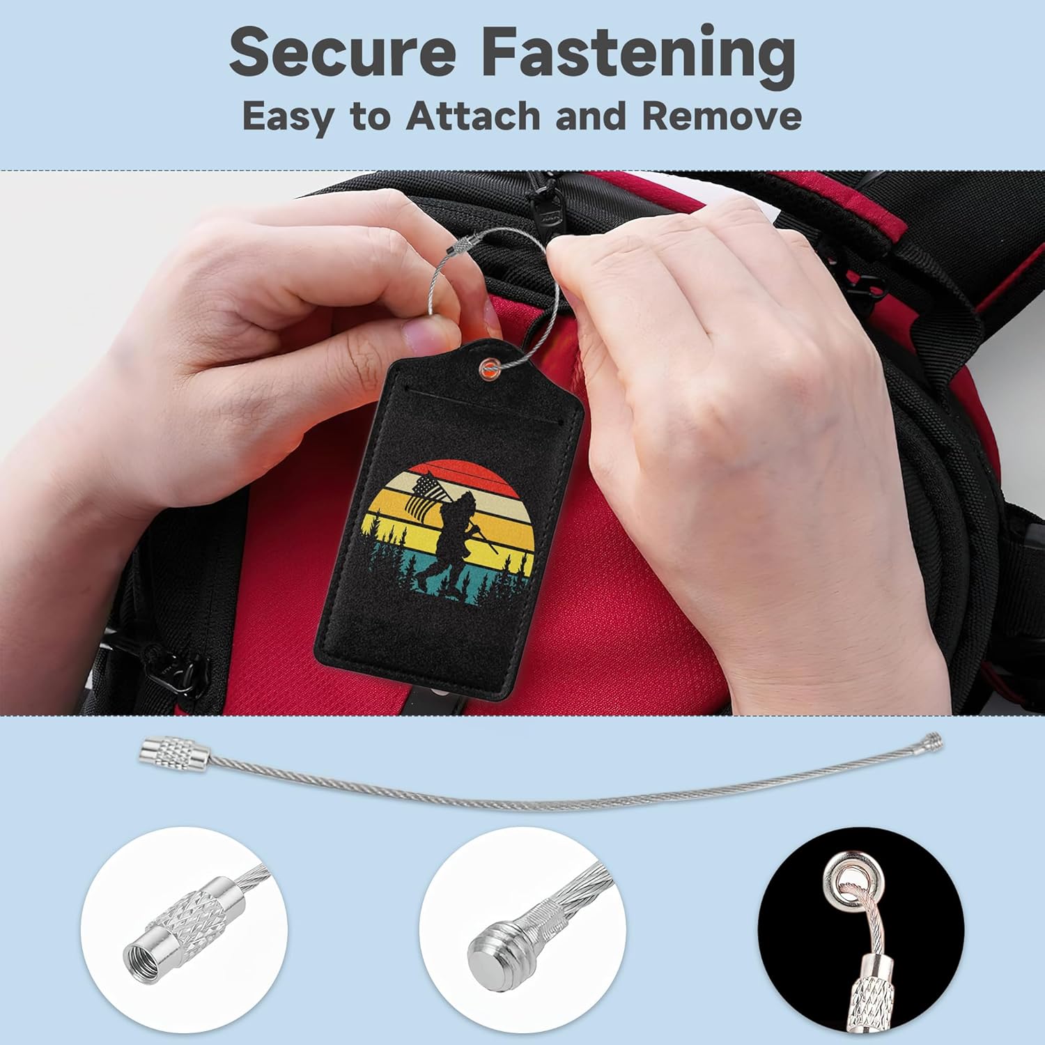 - [ Practical] Crafted from premium PU leather, these luggage tags boast exceptional sturdiness and resistance to deformation. The detachable steel loops enable effortless attachment and removal from your bags, ensuring a secure fit that won't come loose or tear.