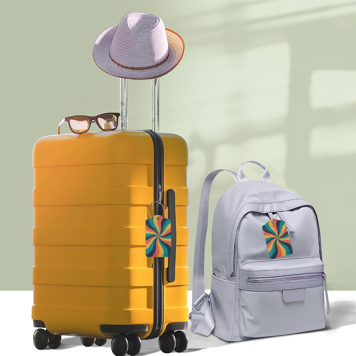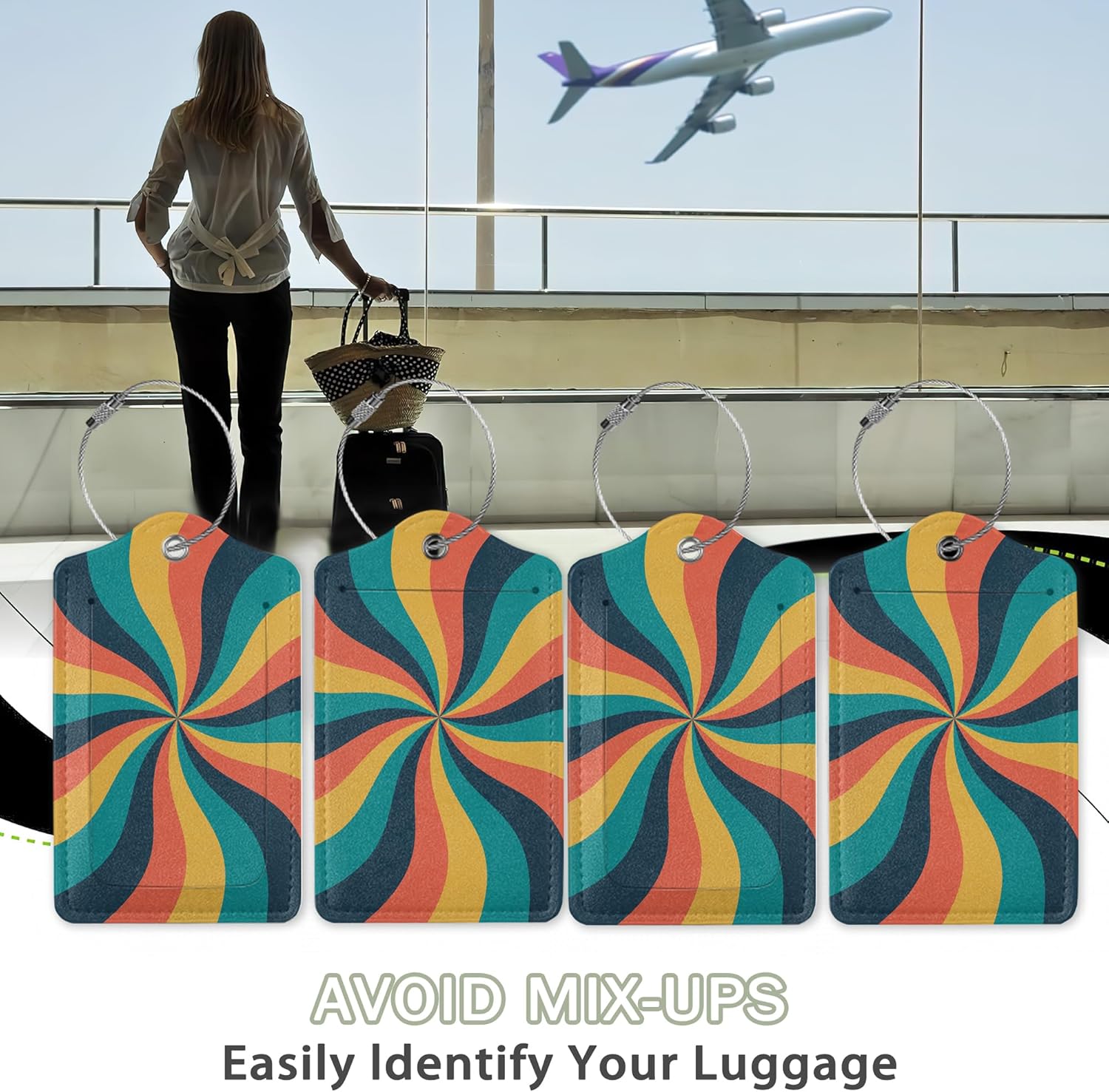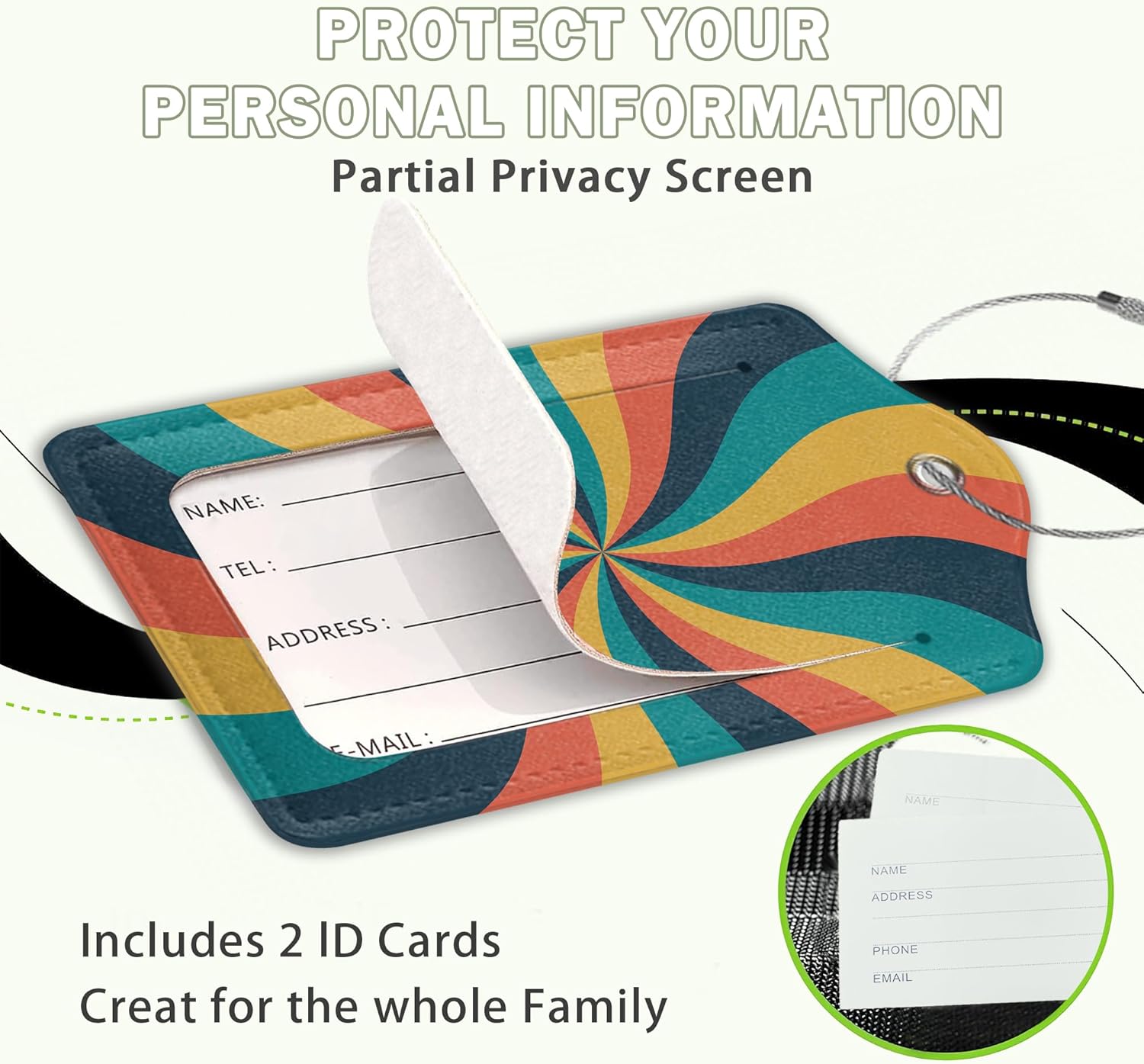 2 Pcs 70s Retro Wavy Luggage Tags,Cruise Vintage Twisted Ray Luggage Tag with Privacy Flap,Name Id Label and Steel Loop for Women Men Travel Bag Suitcase