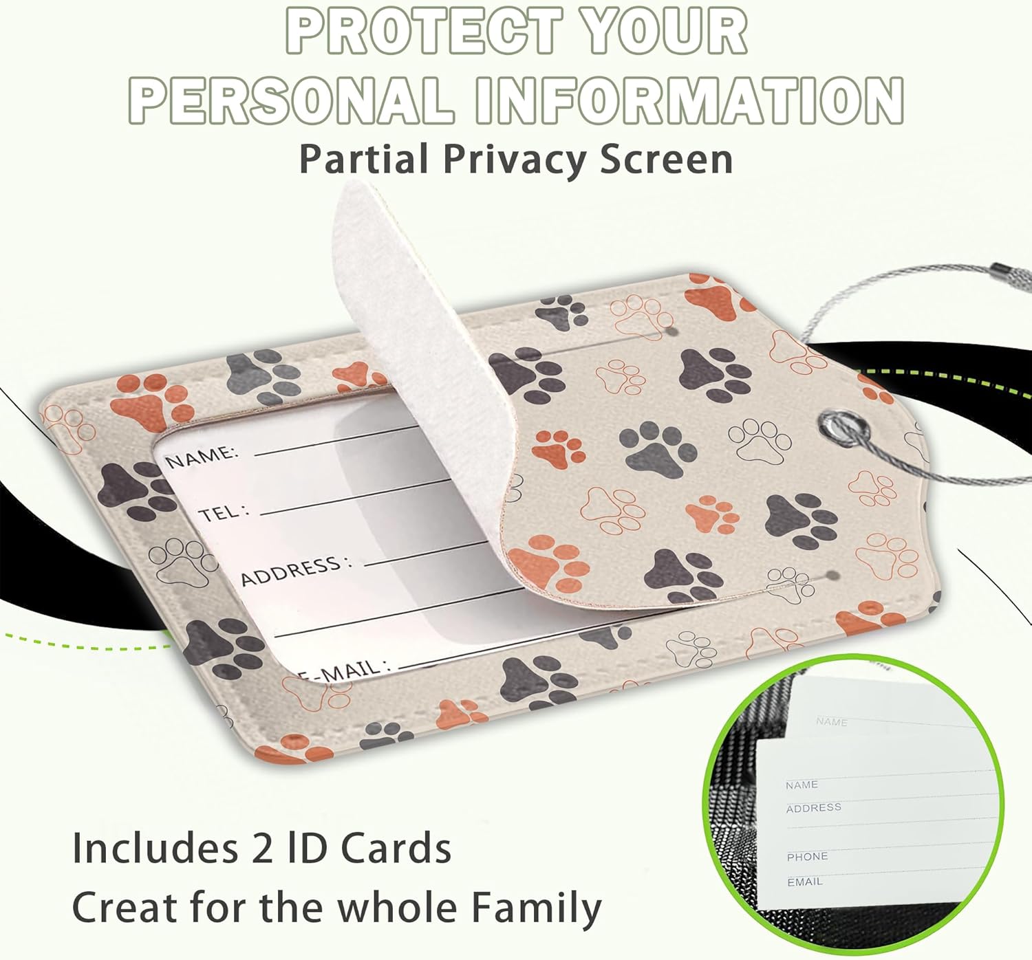 2 Pack Luggage Tags for Suitcase,Dog Cat Paws Leather Luggage Tag Bag Tags Identifiers Privacy Cover Id Label with Steel Loop for Women Men Girls Boys Travel