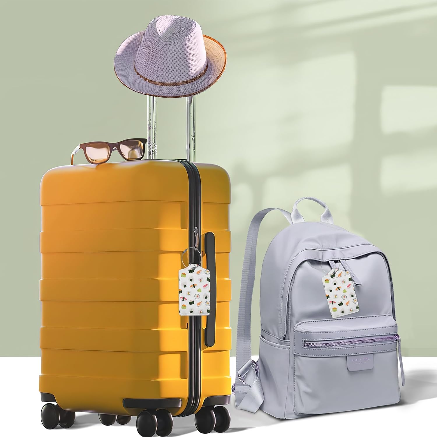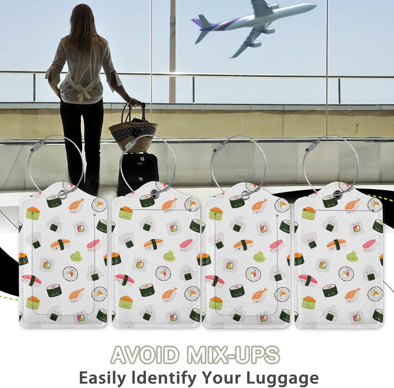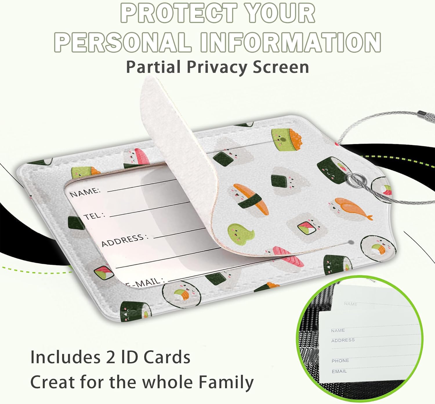 2 Pack Luggage Tags for Suitcase,Cute Funny Japanese Sushi Leather Luggage Tag Bag Tags Identifiers Privacy Cover Id Label with Steel Loop for Women Men Girls Boys Travel