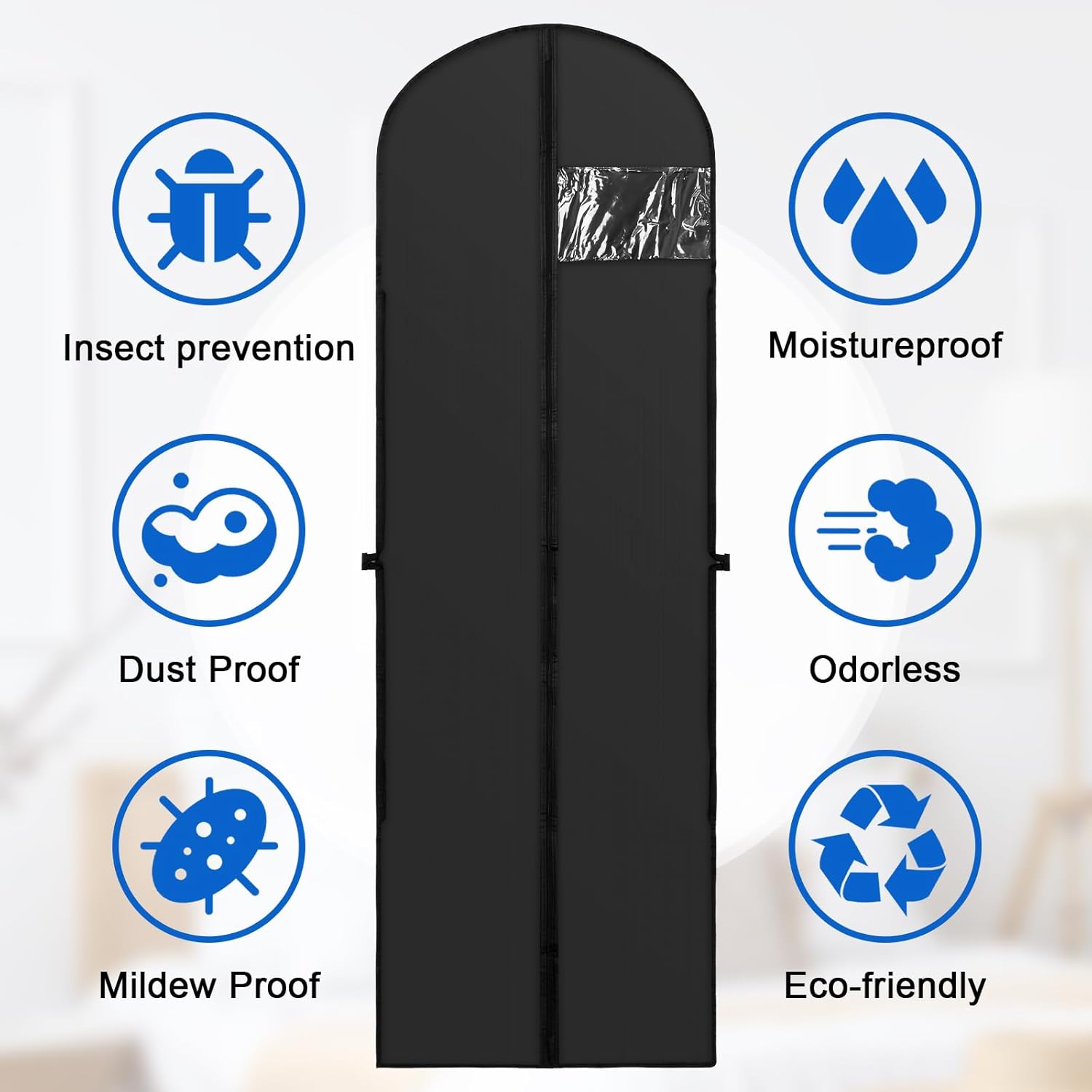 70" Long Garment Bags for Travel Dress, 2 Pack Dress Bags for Gowns, Garment Bag for Long Dress, Closet Wardrobe Bags for Gowns Tuxedos, Black