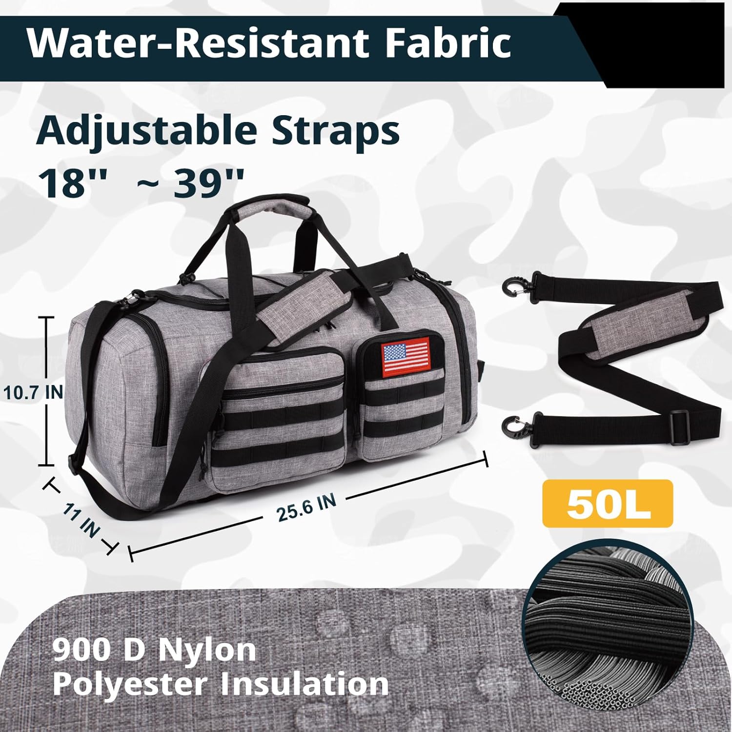 - 【Multifunctional Duffle Bag】The gym bagpack Measuring 25.6"L x 11"W x 10.7"H with a 50L capacity, this multifunctional large duffle bag is both stylish and practical. Perfect for a variety of uses, it can serve as a gym bag, travel bag, sports duffle, overnight bag, weekender, hospital bag, business travel bag, dance bag, camp duffle, airplane carry-on, university duffle, or swim bag.