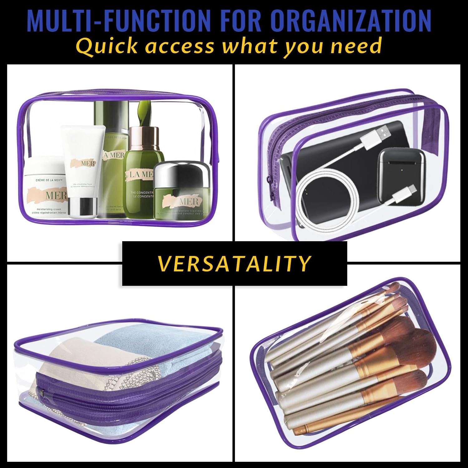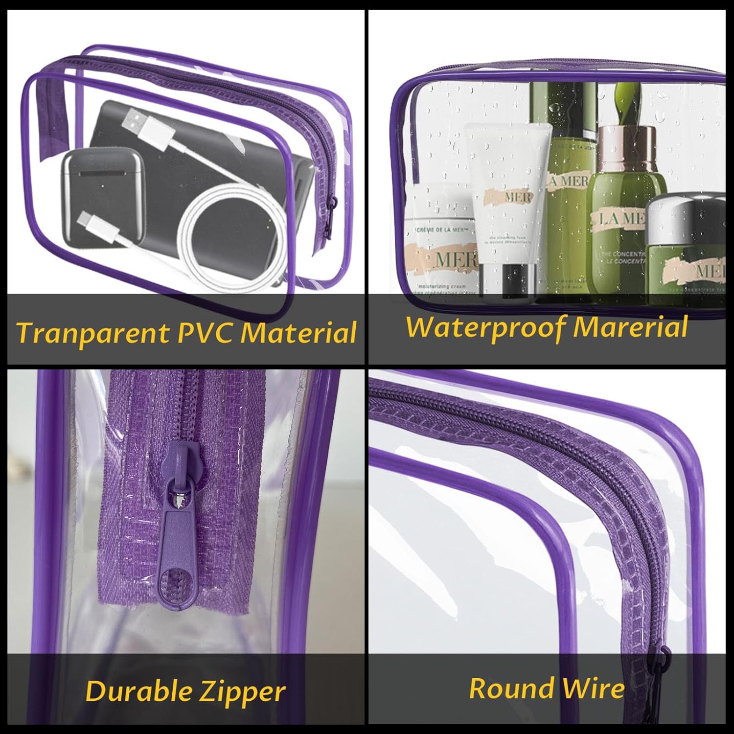 16 Pieces Clear Makeup Bag PVC Zippered Clear Toiletry Carry Pouch Portable Cosmetics Bag Waterproof Makeup Bag Vinyl Plastic Organizer Case for Travel Vacation Bathroom (Purple-M)