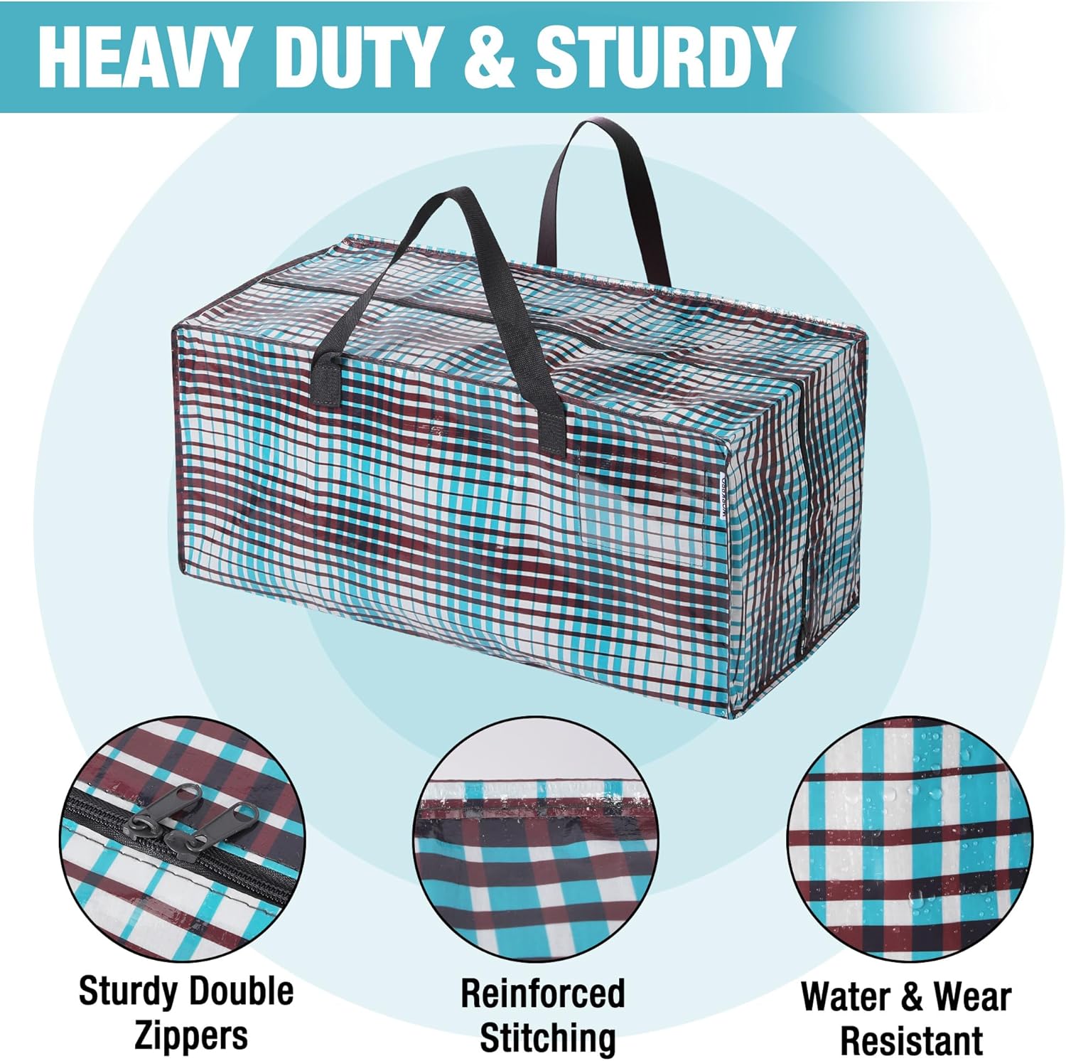 - Heavy Duty & Sturdy: The 6-pack large moving bags are made of high-quality, water and wear-resistant polyethylene to ensure the bags can withstand heavy loads and regular use. The bags feature sturdy double zippers and reinforced stitching for added strength and durability
