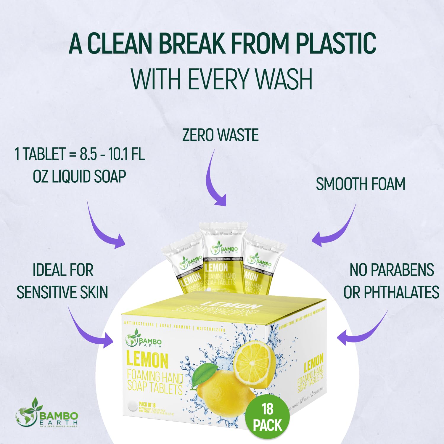 18 Pack Natural Foaming Hand Soap Tablets - Soft Moisturizing Handwash Tab Refills - 1 Tablet = 9 Oz Refillable Liquid Wash Foam Handsoap - Eco-Friendly Paper Softsoap Refill Tabs (Lemon)